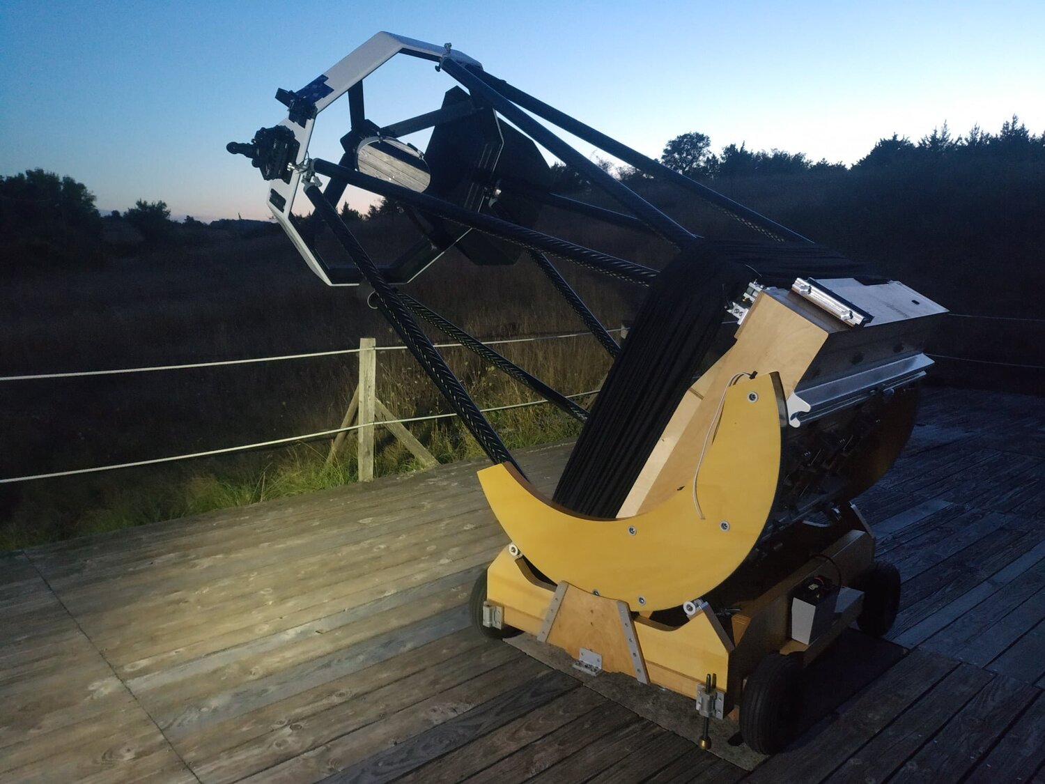 Ou (vu le budget qui est rikiki comparé à un télescope d'un mètre) il pourrait penser à un 600mm sur une remorque qui peut servir de plate-forme d'observation, question d'être mobile aussi.