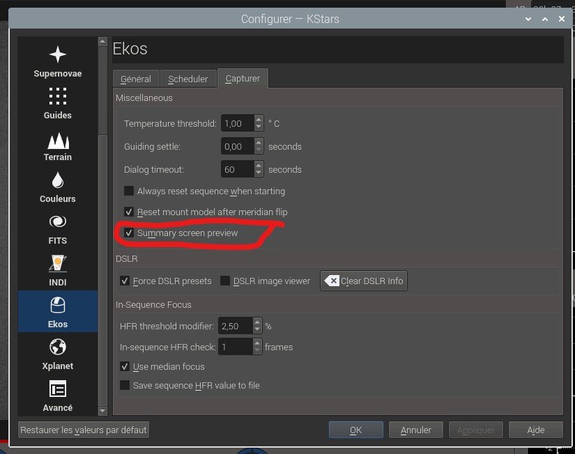 gehelem Posté 11 février 2022 Posté 11 février 2022 il y a 22 minutes, jpv84 a dit : de plus je n'ai pas les mêmes options que toi, pas d'onglet application oui c'est normal, ça varie beaucoup en fonction des distributions et des versions ... remplace juste ceci : kstars %U par cela : LANG=en_EN kstars %U attention, procéder de cette façon force la langue en anglais (tu ne pourras plus revenir en français en utilisant le menu aide)