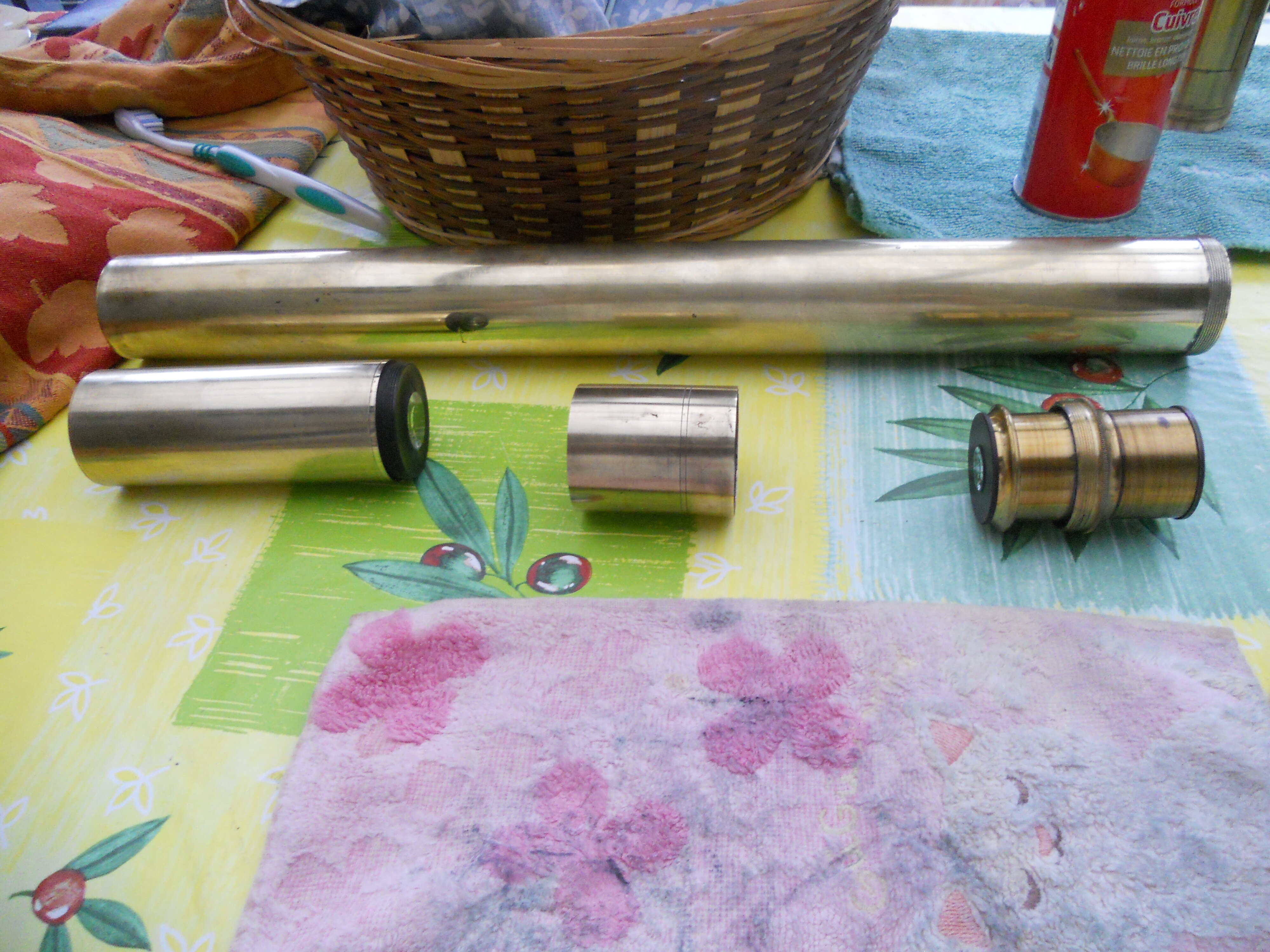Le premier bloc oculaire à par contre une vraie patine qui n'est pas de l'oxydation marron, j'avais raison, c'était pas une patine qui recouvrait la lunette mais une véritable "rouille" de l'air marin. Par contre sur cet oculaire terrestre, la partie 1, elle est magnifique cette patine, elle je la garde telle qu'elle.