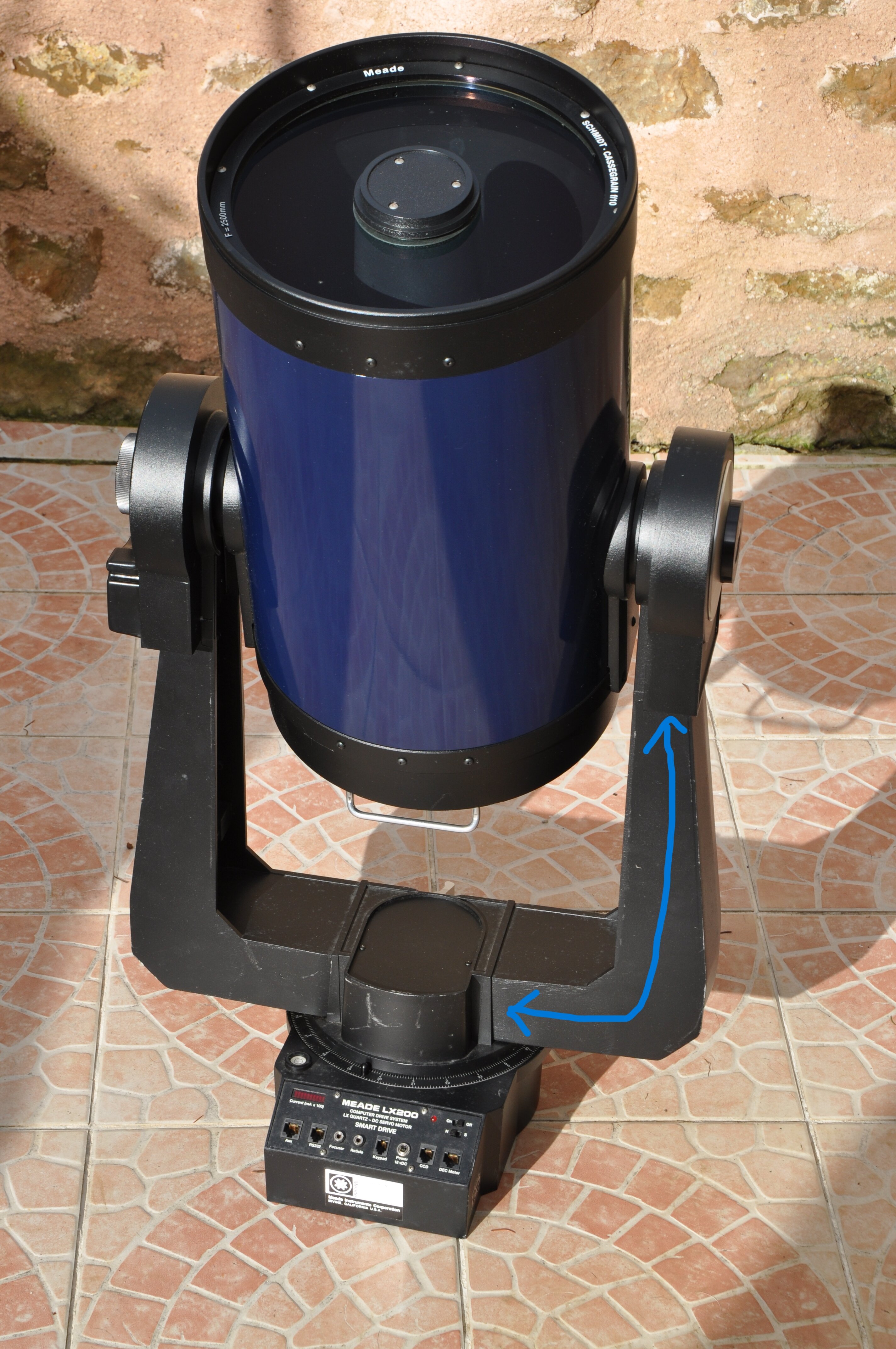 J'ai dit une betise hier en signalant que les deux moteurs se mettraient en marche. En fait celui de la déclinaison doit être branché avec un des câbles qui manquent (rj45) entre le port DEC de la plaque et celui present en bas de la fourche, à droite qui se connecte donc à celui que tu as surligné.