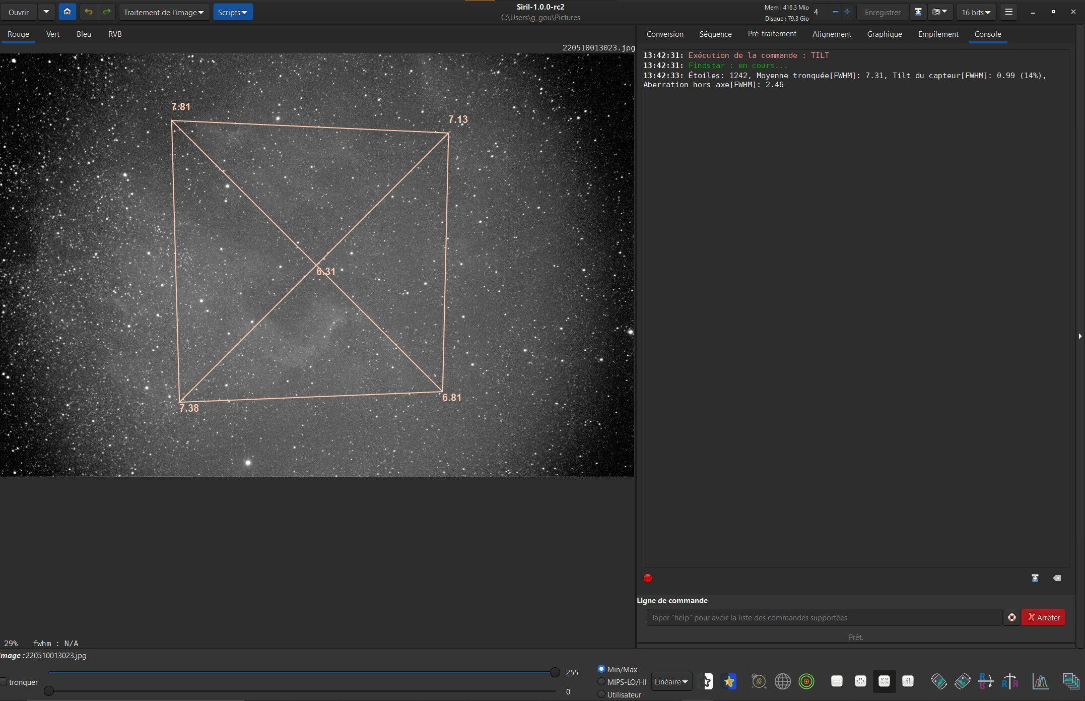 J'ai fait une commande tilt sous siril sur mon test sur ngc7000