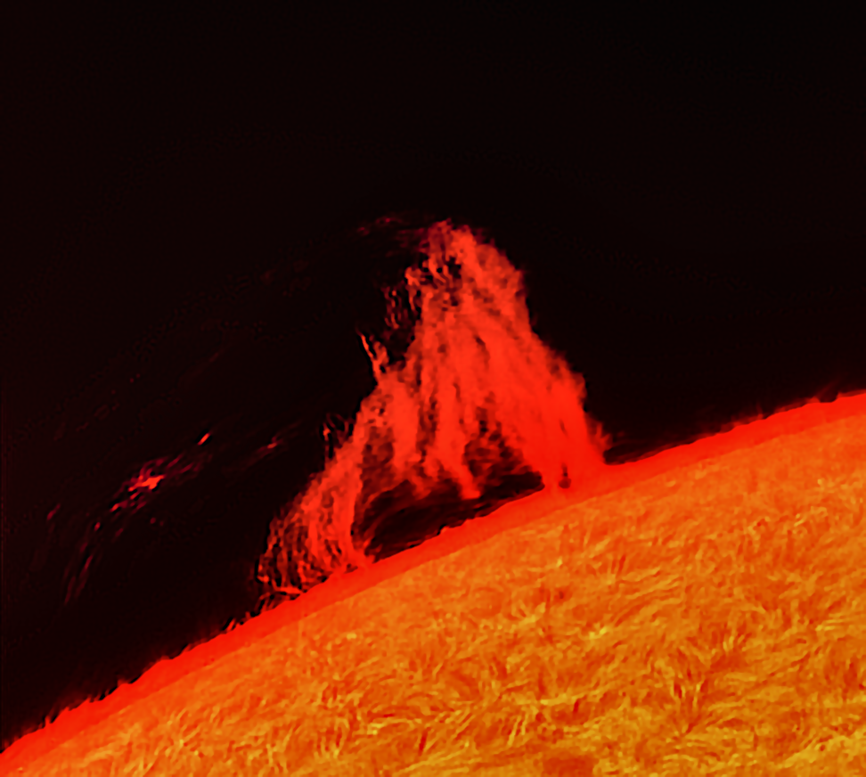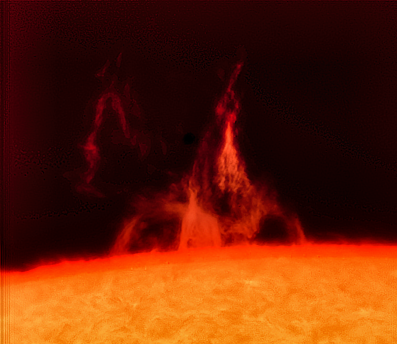 Soleil Deux magnifiques et grosses protubérances 23 janvier 2022 Lunette 150 mm halpha