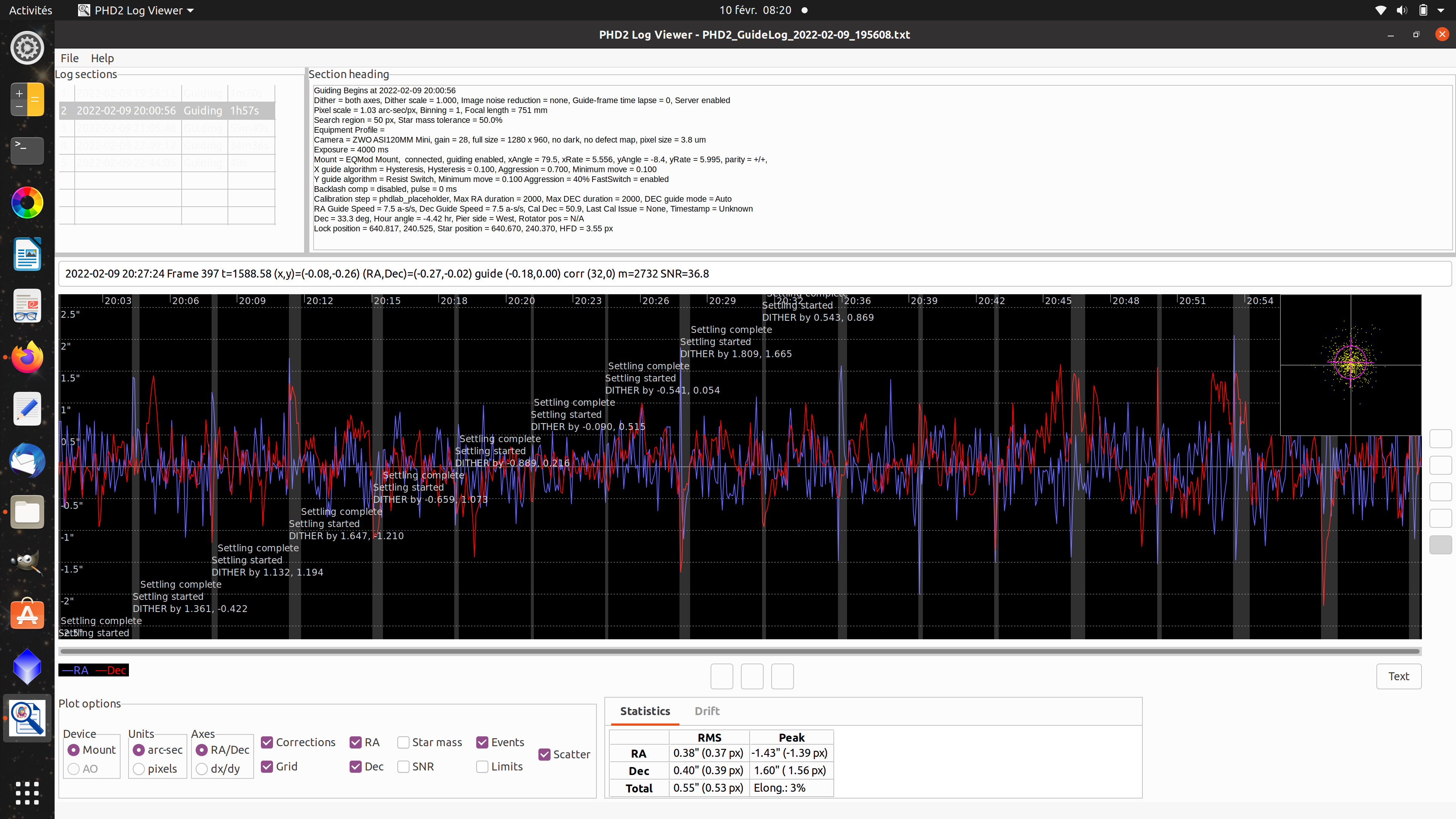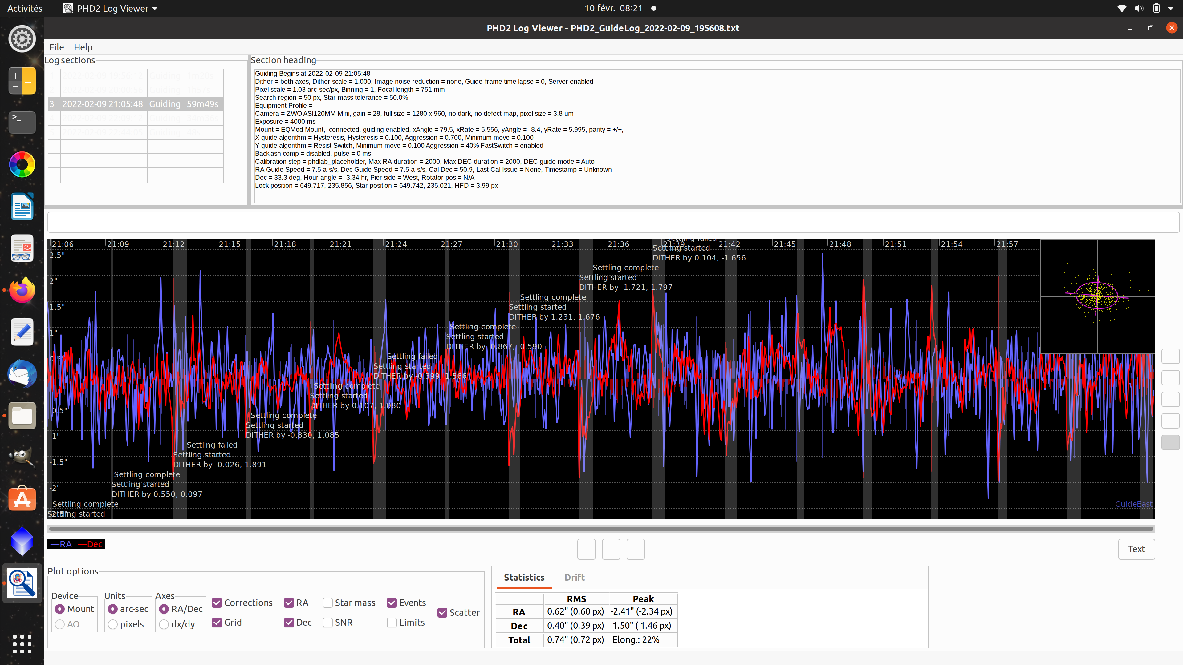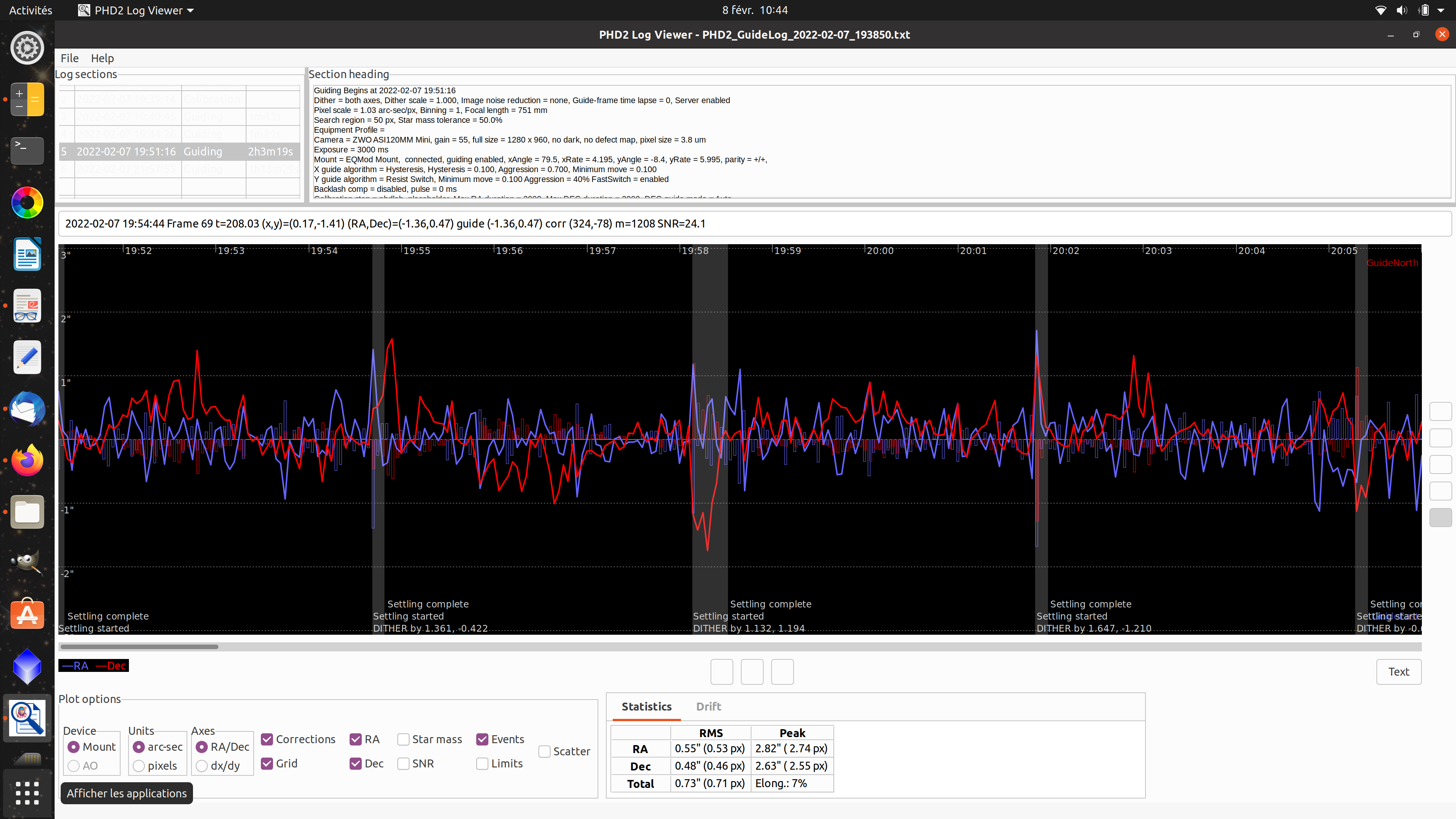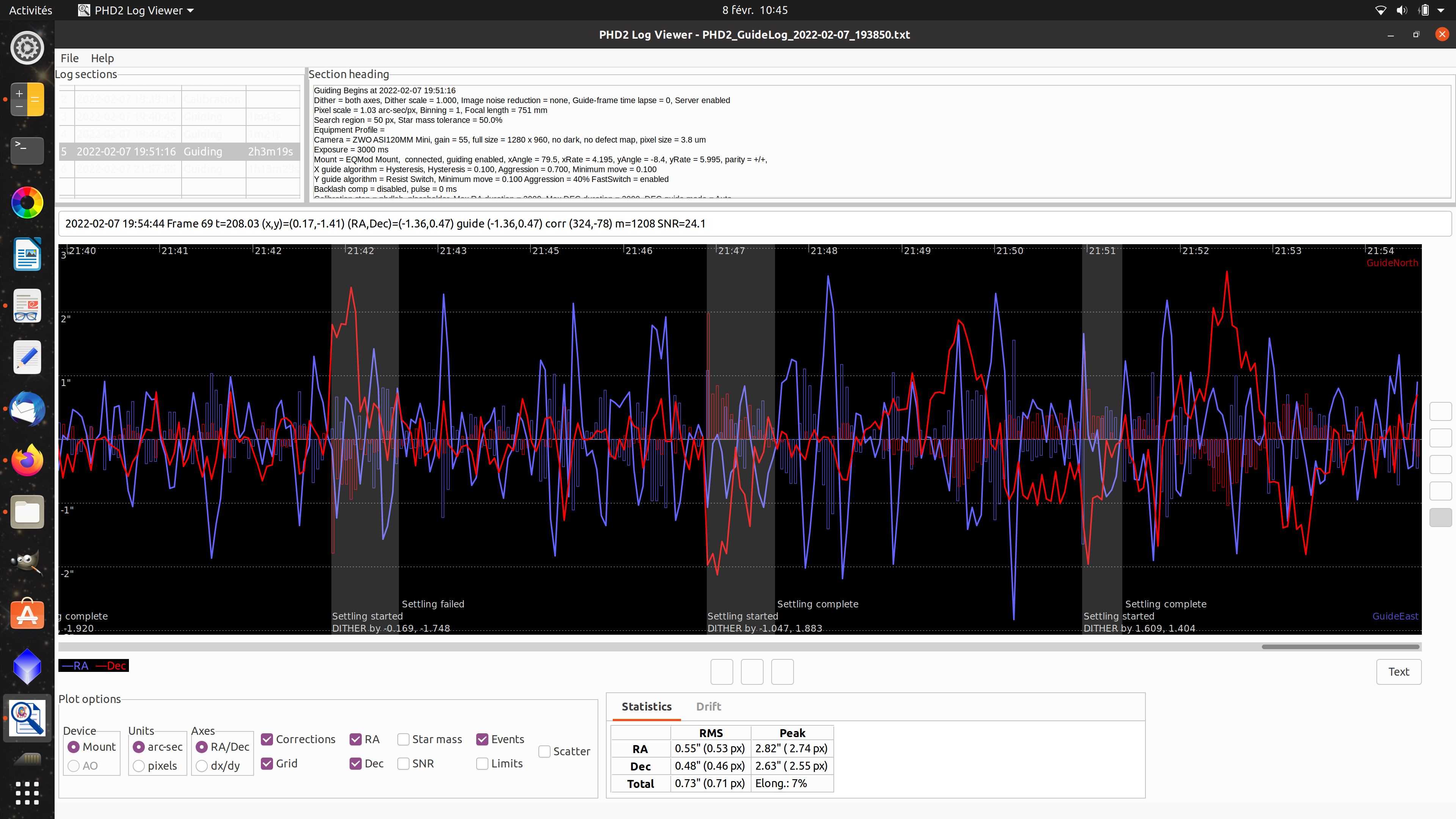 Dégradation du guidage au cours de la nuit (AZ-EQ6)