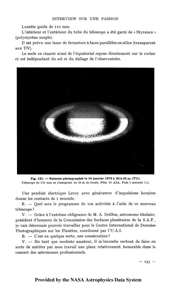 JonathanGrégoire Posté 13 février 2022 Auteur Posté 13 février 2022 (modifié) Le 11/02/2022 à 19:00, LH44 a dit : Il vaut une fortune celui là tu as dû le payer cher non ? Prix demandé 235€ sur LBC Atlas guide photographique de la lune - Georges Viscardy - 1984 - TBE - Livres (leboncoin.fr) Bonjour LH44, j'ai eu certainement la chance du "faux-débutant", car je l'ai trouvé sur Ebay pour 150 euros et tirage des premières séries. Il est comme neuf et depuis que je l'ai reçu, je potasse dur. Je trouve ce livre imposant très précis pour comparer ce que l'on observe et photographie, pour conduire aussi un petit programme de sélénographie. Idéal. Hier par exemple, je m'en suis servi pour observer Gassendi et la Mer des Humeurs. J'ai pu grâce à ce que montre et explique Georges Viscardy bien voyager dans cette région lunaire et cerise sur le gâteau j'ai réussi avec ma 120 mm "oldschool" de la fin du XIXe s, à observer un rimae à l'intérieur du cratère et les 3 pics centraux. Précieux ce livre tant pour la bibliophilie des Astrams que pour ses qualités pédagogiques et pratiques pour l'observation lunaire. Amitiés Jonathan Modifié 13 février 2022 par JonathanGrégoire