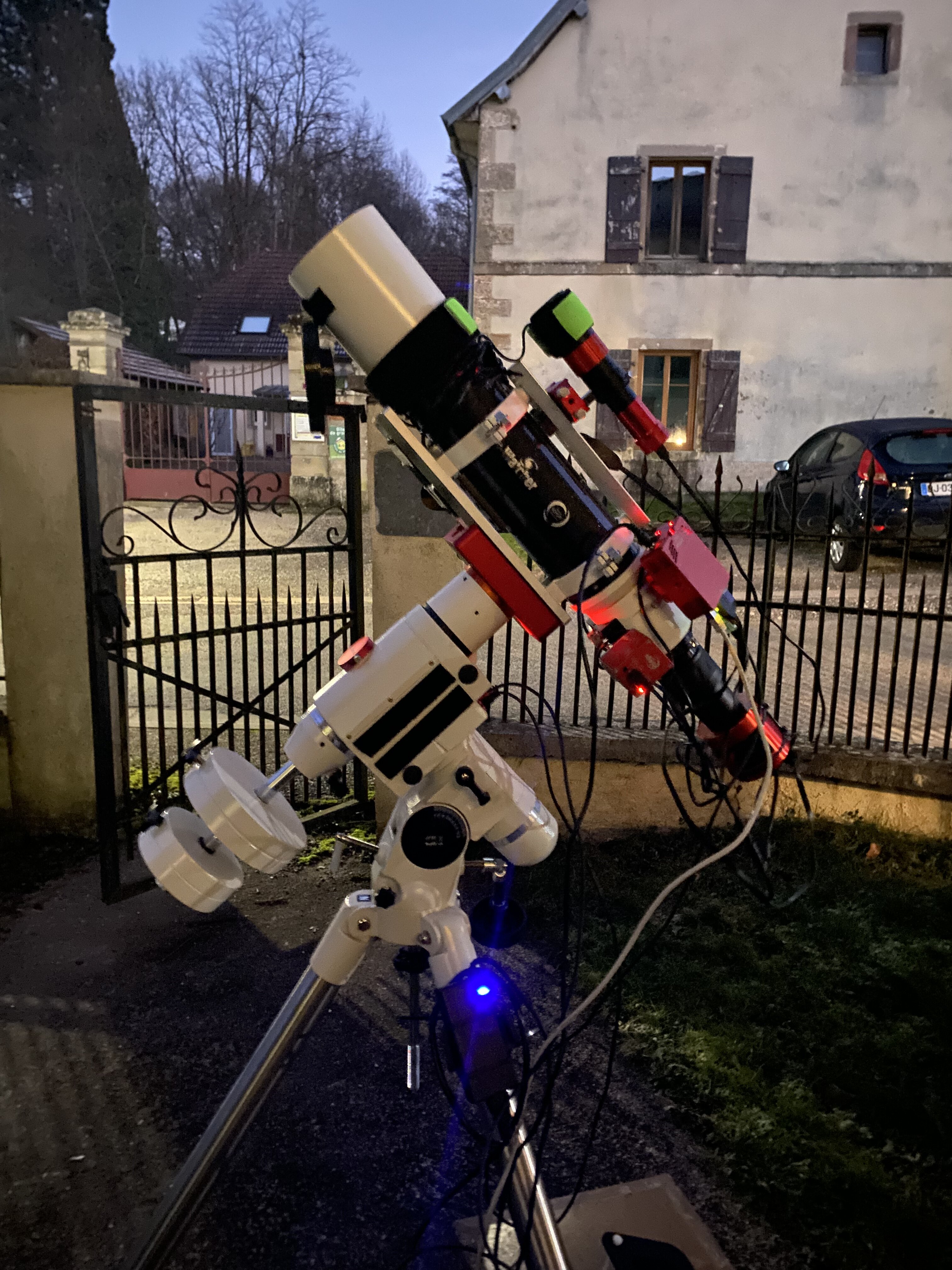D'après ce qui est indiqué, dans le message de  Domsto70 ("Mon setup heq5 pro 80/600 asiair et 533 mc pro") il s'agit très probablement d'une  lunette Skywatcher 80/600 ED Black Diamond sur une monture équatoriale HEQ  Pro GoTo.