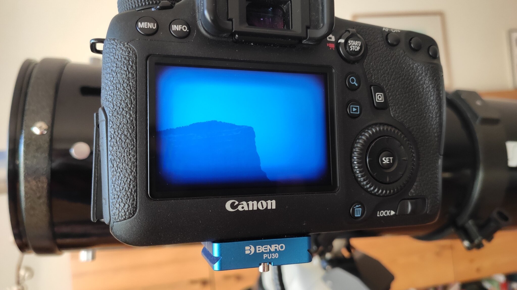 Je viens de recevoir une Photon 150/600 avec un correcteur de coma TSGPU (teleskop.de). J'ai un Canon 6D pour imager. Le montage paraît simple : on visse la bague T48/canon sur le correcteur de coma et on fait la mise au point. Mais j'obtiens une image nette au centre mais entachée d'un cadre flou tout autour. J'ai essayé de jouer sur la distance entre l'appui du filetage 48 et le plan focal de l'APN mais rien n'y fait. Deux photos joints pour illustrer le setup et une photo.