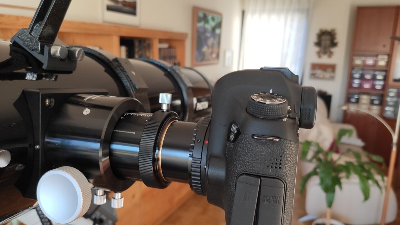 Et bien j'ai vérifié il me semble qu'il y a bien un filetage interne en M48 (https://www.pierro-astro.com/materiel-astronomique/accessoires-apn/bagues-canon-eos/bague-t-m48-pour-canon-eos_detail), mais cela ne permet toujours pas d'avoir les 52 mm. Il existe par contre celle ci (https://www.pierro-astro.com/materiel-astronomique/accessoires-astronomie/bagues-adaptatrices/bague-adaptatrice-m48-femelle-vers-canon-eos-ef-ts_detail) avec un tirage très réduit de 4,8 mm avec des bagues M48 ensuite. Je crois que je vais aller vers cette solution ? J'ai déjà commandé des M48 en 5, 10 et 20 mm et il y a un réglage possible sur le GPU qui devrait permettre d'arriver au 52 mm.
