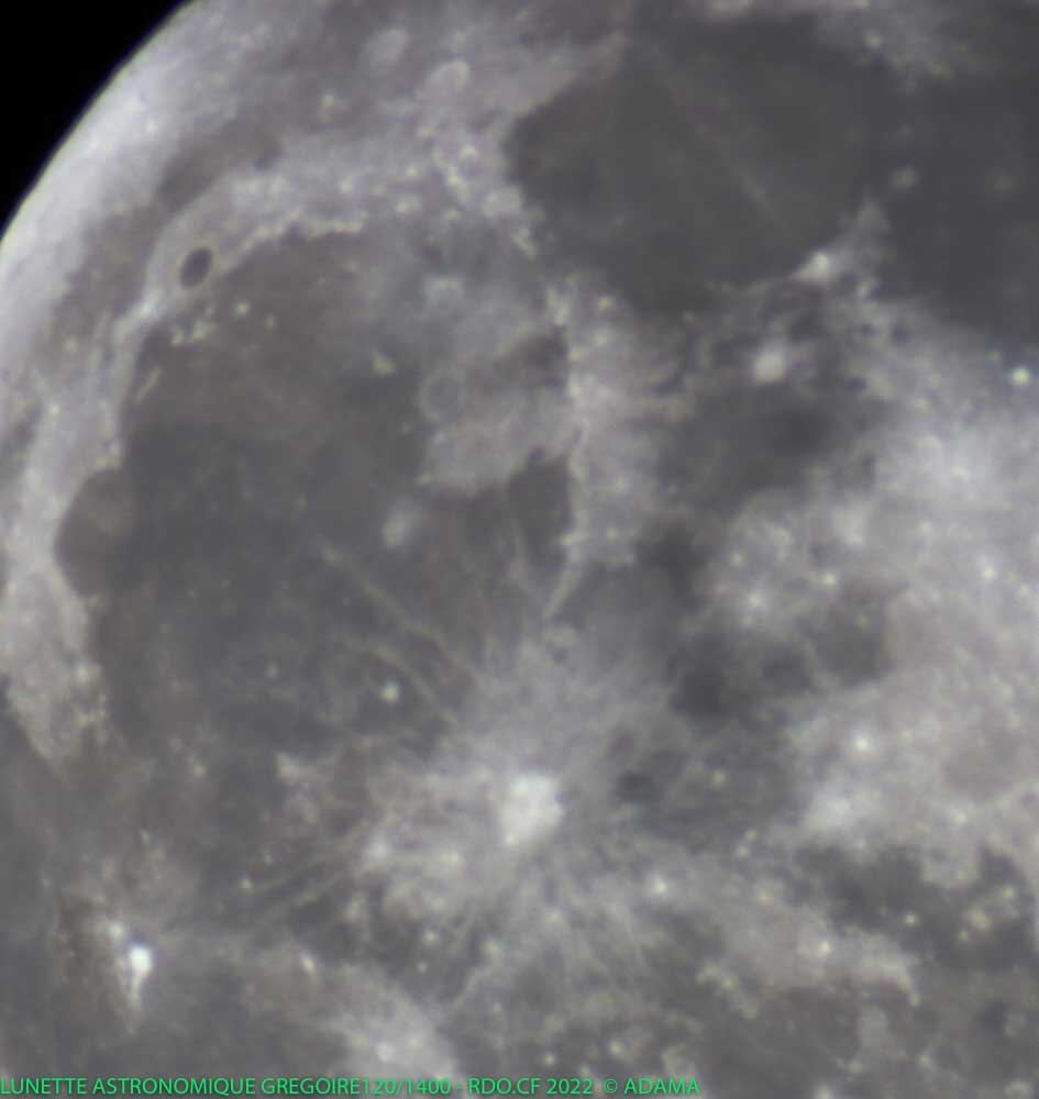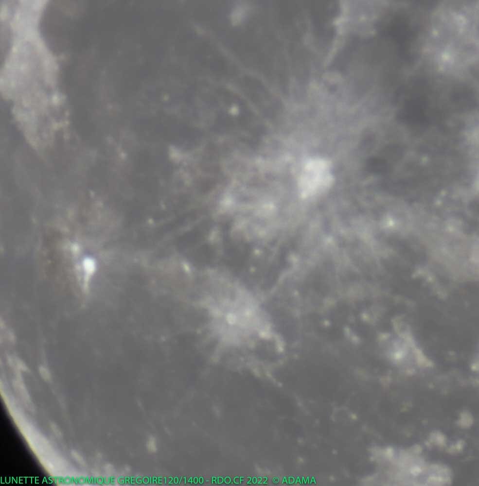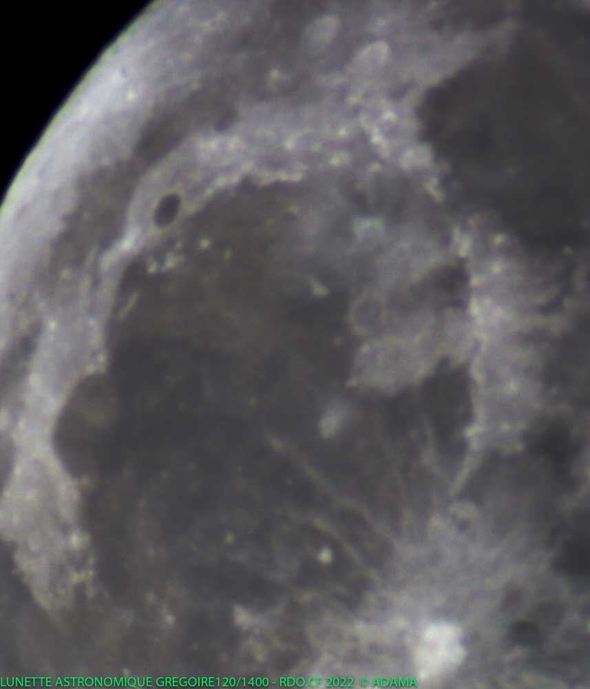 JonathanGrégoire Posté 20 mars 2022 Posté 20 mars 2022 (modifié) Hier soir j'ai tenté ma première astrophoto lunaire au foyer de ma Grégoire, j'ai reçu un adaptateur pour cela, mais il était pas au bon diamètre du tube crémaillère, impossible de le rentrer dedans. Alors j'ai retiré l'adaptateur et j'ai cherché "reflex au poing" les rayons lumineux du foyer de ma Grégoire. Une opération difficile car un vrai jeu d'équilibriste. Et miracle j'ai pu capter l'image au foyer quelques secondes, après des tas de photos ratées. Le problème c'est que je pense avoir perdu beaucoup de lumière de cette manière, sans tube adaptateur et en "cherchant les rayons lumineux au foyer" mais je trouve que c'est pas trop mal pour cette photo unique. La première du genre pour moi. Cependant les agrandissements ne donnent pas grand chose, malgré 22 millions de mégapixels, cela reste pas net ! Vivement le bon adaptateur. Modifié 20 mars 2022 par JonathanGrégoire 1