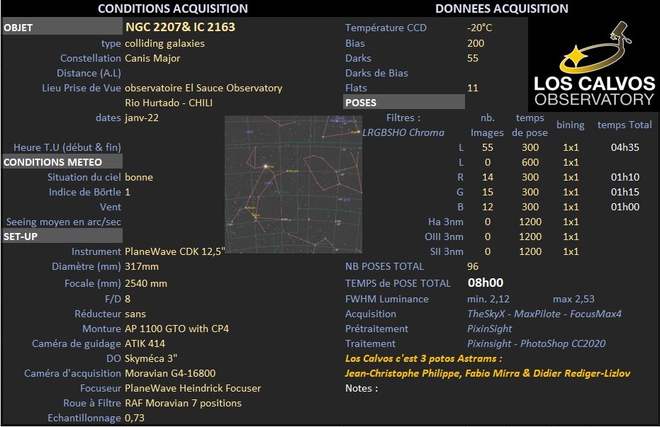2 petites galaxies australes en collision NGC 2207 & IC 2163