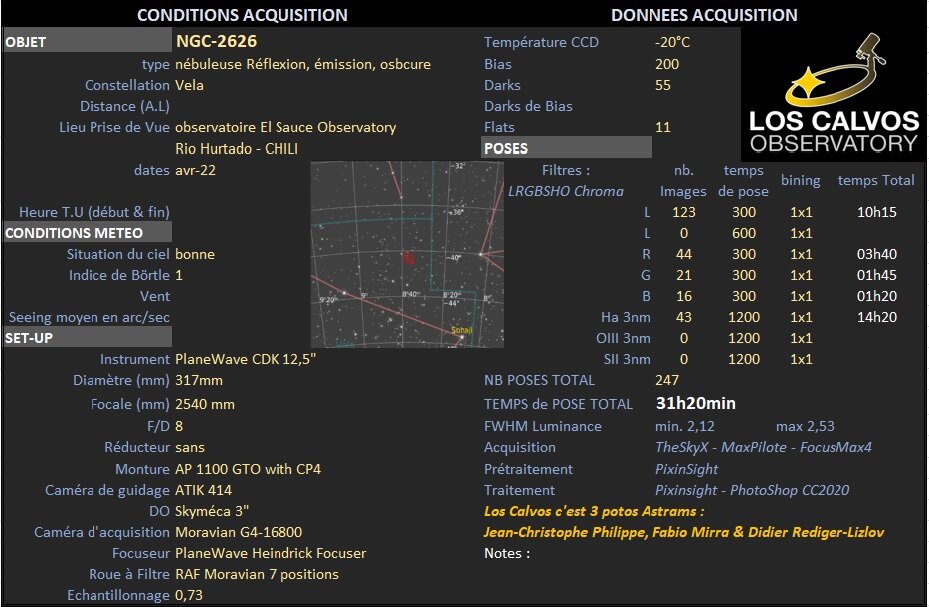 Une nébuleuse par réflexion, émission et obscure dans les Voiles : NGC 2626
