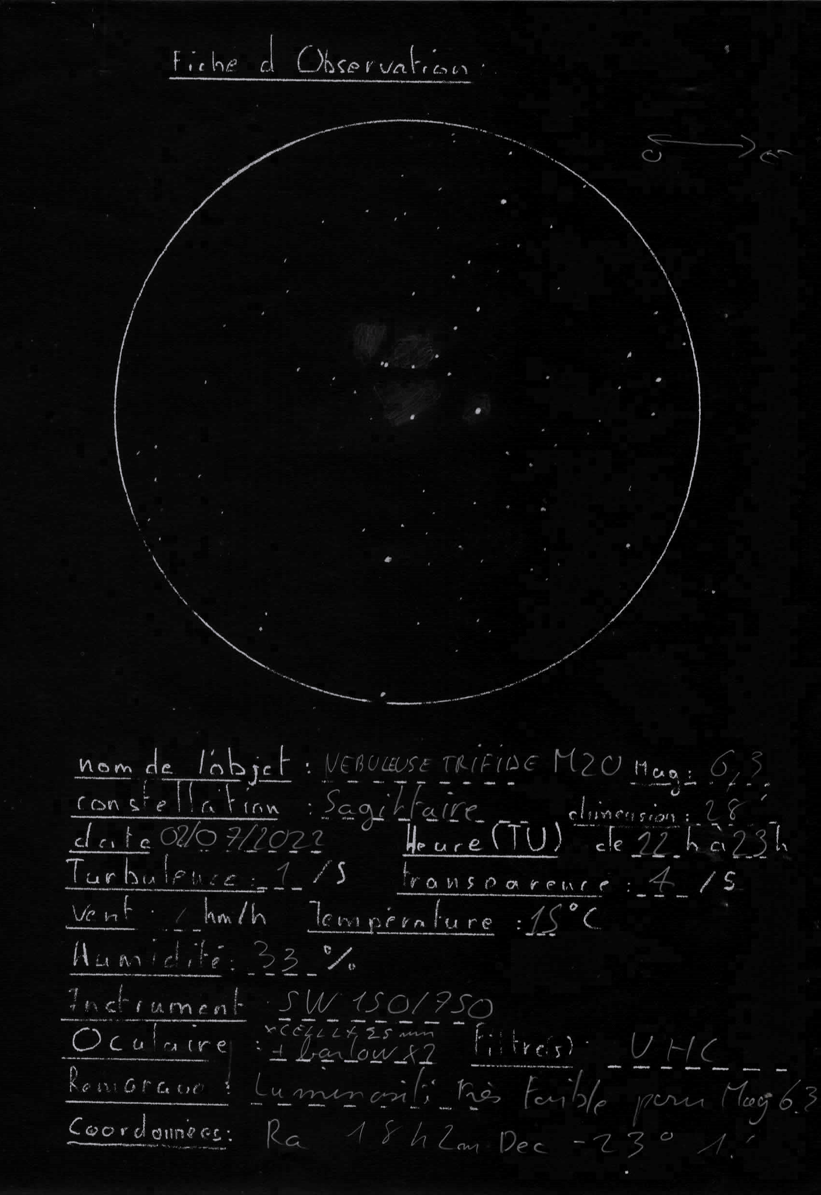 M20 nébuleuse trifide (photo et dessin)