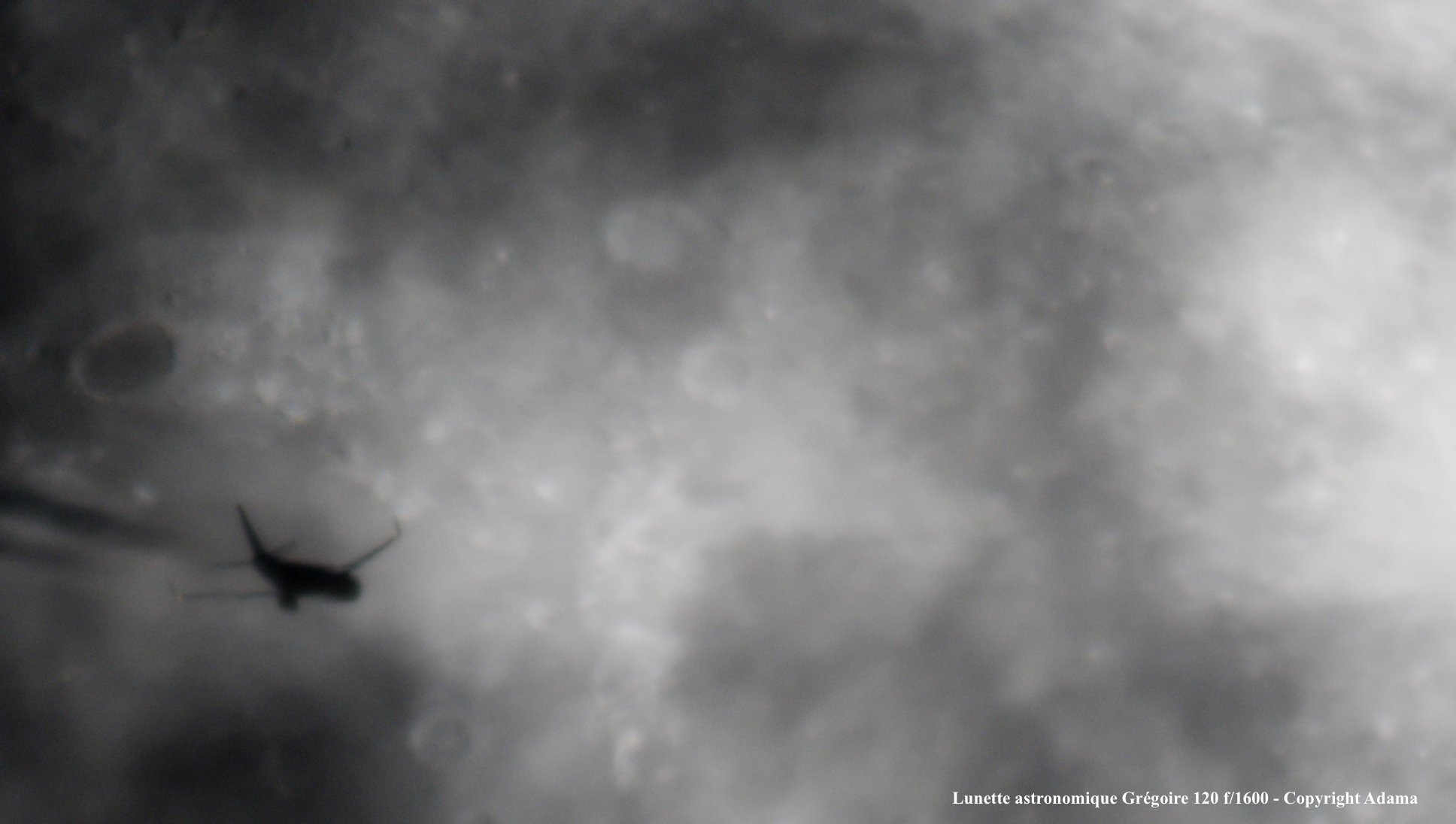 JonathanGrégoire Posté 7 septembre 2022 Auteur Posté 7 septembre 2022 Hier soir, 6 septembre 2022 j’ai pris toute une série d’astrophotos d’Artémis (une des déesses grecque associée à la Lune), et je dois dire que la série est réussie, cela donne un aspect surnaturel à la Lune par la présence de nuages noirs dans le ciel. Et j’ai eu la surprise de découvrir en triant mes 1500 astrophotos, celle-ci qui montre un avion de ligne qui semble survoler la Lune, au-dessus de la région du Lac Noir (cirque Platon), des Alpes lunaires, de la Mer des Pluies et en direction de la Mer de la Sérénité. Cette photo est le fruit du hasard, car je n’avais pas vu sur mon écran d’ordinateur qui retransmet l’image en direct provenant de la lune via ma lunette astronomique cet avion. Astronomicalement vôtre. 2 4