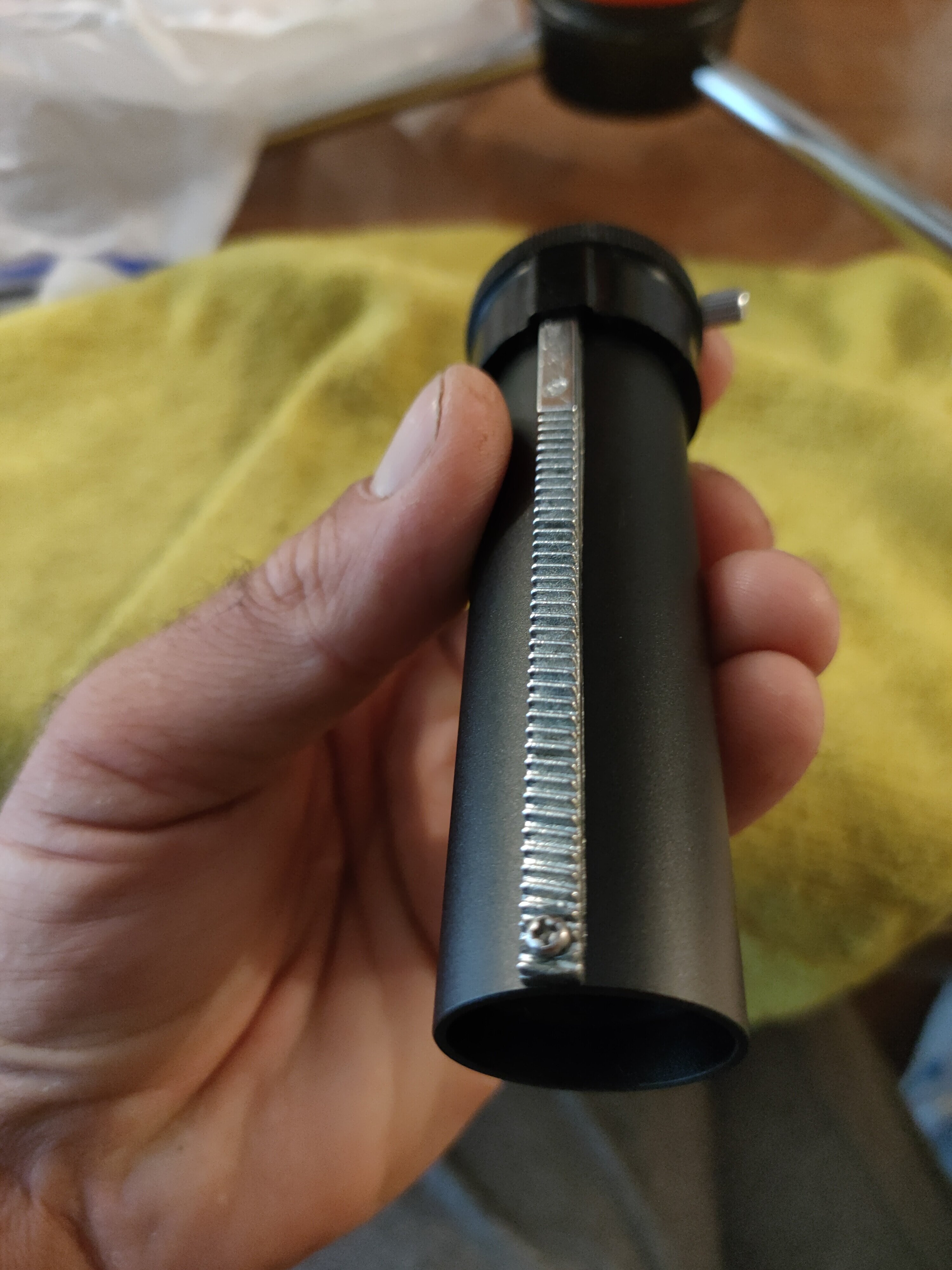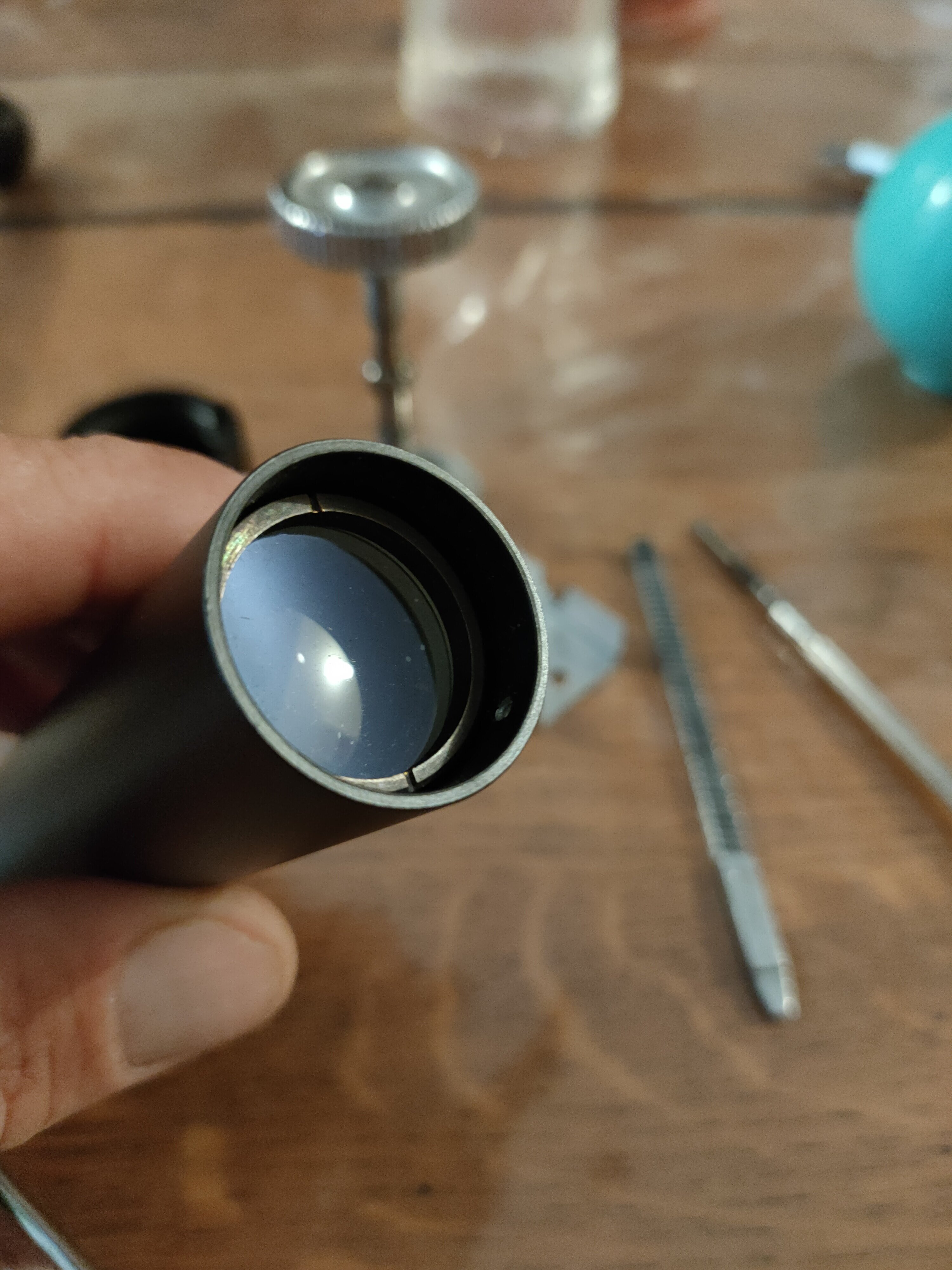 Moot Posté 14 juillet 2022 Posté 14 juillet 2022 Il y a 4 heures, Jorris a dit : Le porte oculaire Attention surprise Bai oui, la focale est de 550, alors il y avait bien un loup. Perso j'y avais pas pensé, mais voici un petit Doublet enfuie dans le porte oculaire. On verra ci ca pose problème pour la collimation. Dans ce cas, faudra l'enlever, collimaté, le remettre. Dans les "bouzoscopes", c'est une lentille simple. Ici, la qualité optique est sans doute tout à fait correcte. Et la collimation, on ne la fait qu'une bonne fois pour toutes sur un si petit instrument.