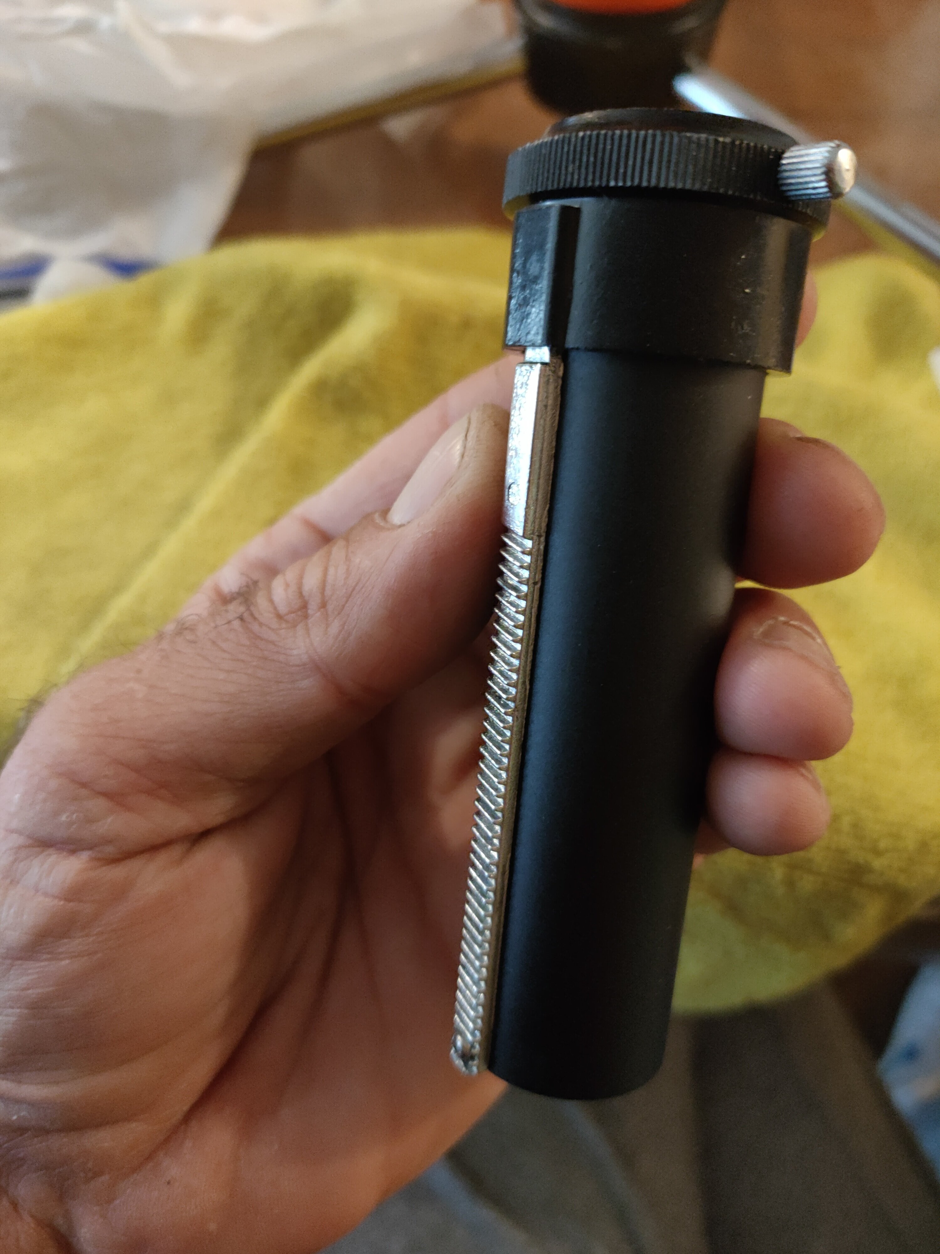 Jorris Posté 14 juillet 2022 Auteur Posté 14 juillet 2022 Le porte oculaire Attention surprise 😁 Bai oui, la focale est de 550, alors il y avait bien un loup. Perso j'y avais pas pensé, mais voici un petit Doublet enfuie dans le porte oculaire. Avant après nettoyage. Juste 2 petites taches de traitement, mais sinon nickel. On verra ci ca pose problème pour la collimation. Dans ce cas, faudra l'enlever, collimaté, le remettre. La crémaillère. Le jeux s'explique par le fait, qu'il y a une visse a une extrémité, mais avant cela elle est emboîté a l'autre extrémité. Alors apres nettoyage de toutes les pieces, micro point de colle coté emboîtement. Le tissu de guidage est nickel Apres nettoyage et petit point de colle (en haut) Plus qu'un micro-jeux tout a fait acceptable, ca coulisse comme dans du beurre. C'est nickel 2