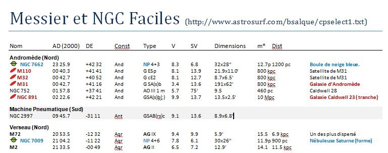 Objets du ciel profonds présent dans liste d'objets faciles mais absents de stellarium
