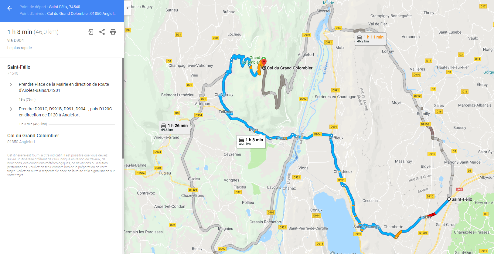 Et encore, la route est fermée après Culoz, c'est pour ça que la route est plus longue que la normale ! Donc au pire tu as 1 heure de route GRAND MAX !!!