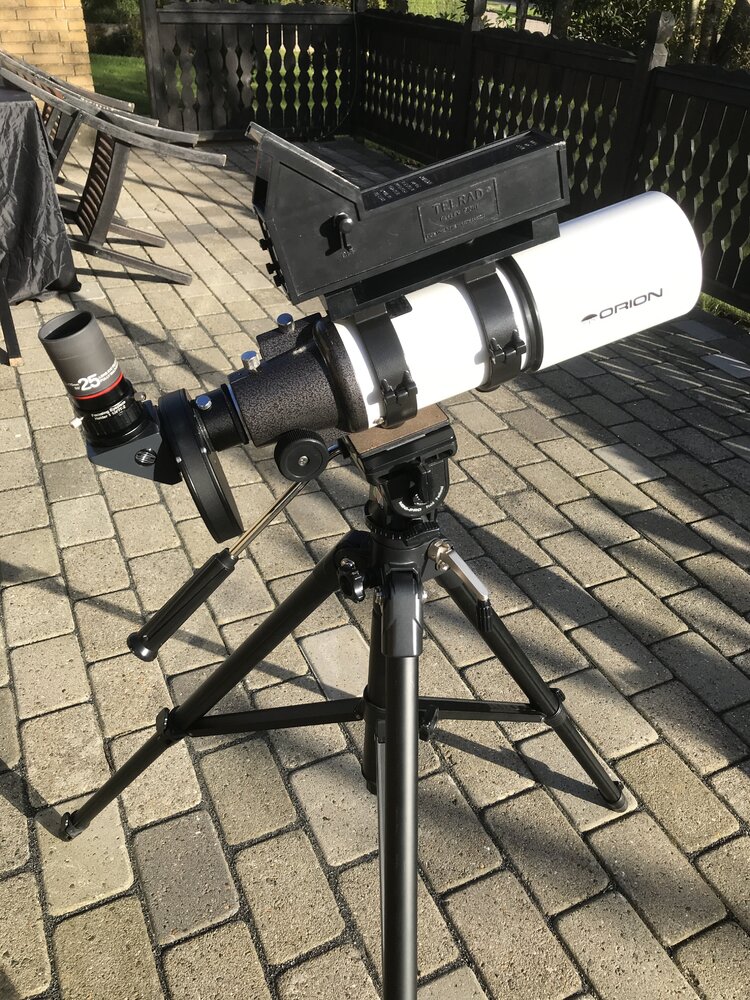 Pour ma part, j’avais longtemps réfléchis à un set ultra léger pour sortir rapidement et peu de temps (le climat Danois est assé lunatique 🙂) et ne plus me retrouver à sortir le Dobson une heure avant et arrivé dehors avec les nuages et la pluie quand c’est l’heure d’observer. L’objectif étant de trouver un petit set sans me ruiner non plus. Je suis arrivé à la conclusion du matériel suivant :