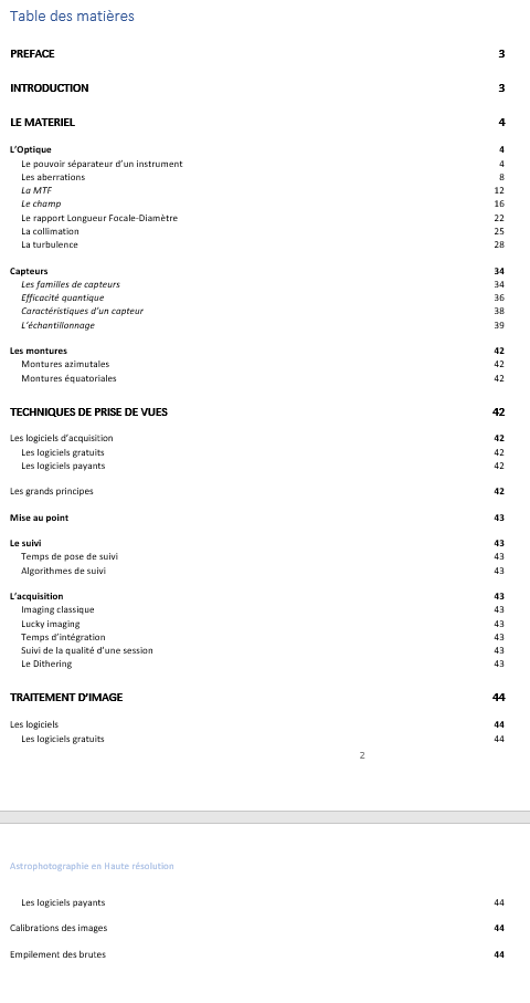 oui, tu n'a pas tord. Mais tu sais, j'écris ce qui est en train de devenir de plus en plus un "précis d'astrophotographie"  destiné aux débutants comme aux astrophotographes confirmés de  7 à 77 ans😁. Un chapitre "sciences" serait un vrai plus mais cela va dépendre du nombre de pages  total. pour le moment, voici la table des matières dans les grandes lignes: