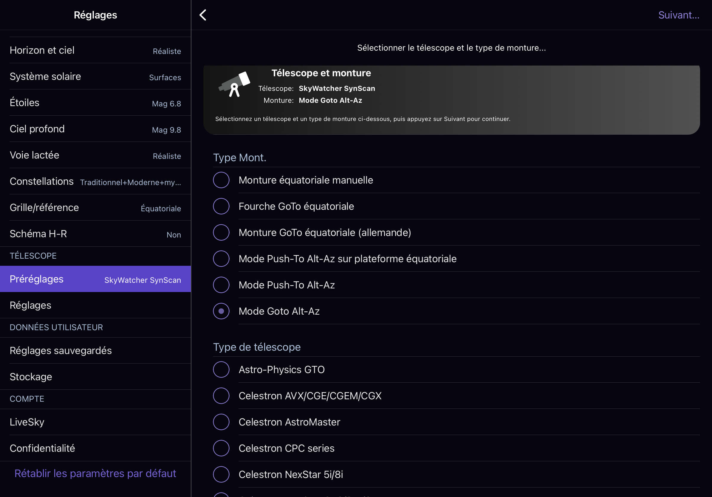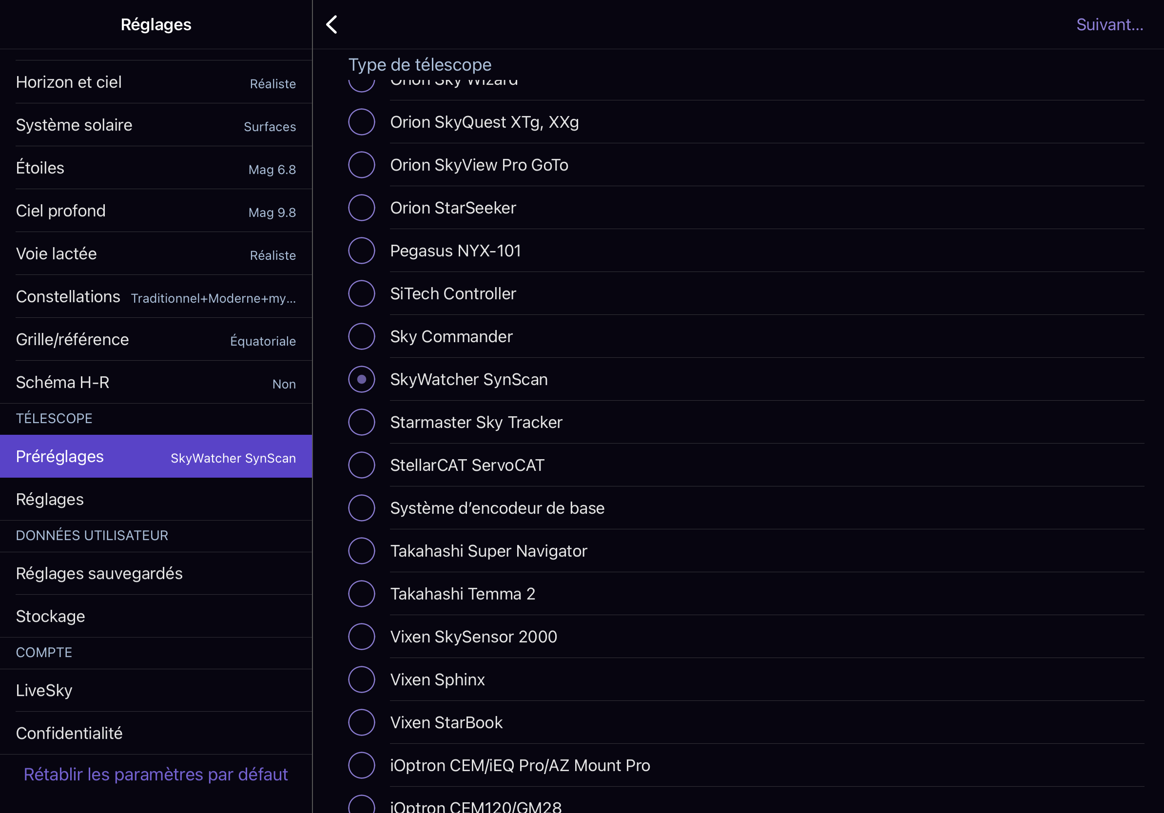 Comment paramétrer le wi-fi de SkySafari pro 7