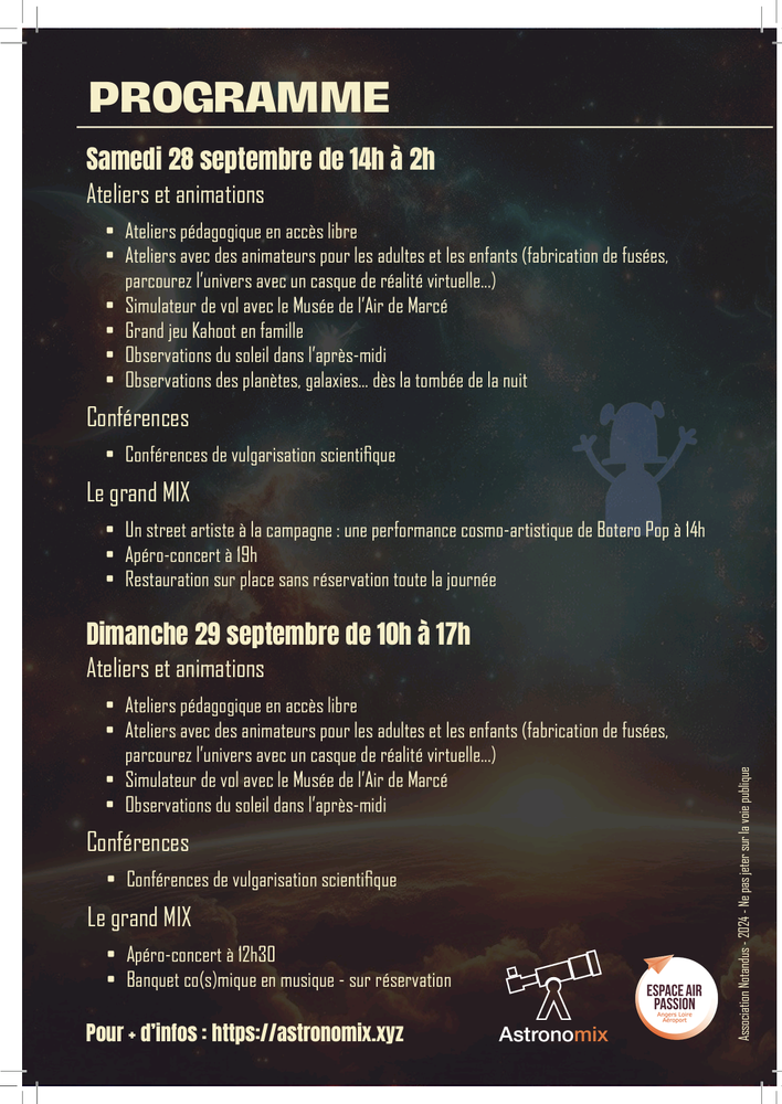 Astronomix : festival de vulgarisation scientifique en Anjou à côté d'Angers