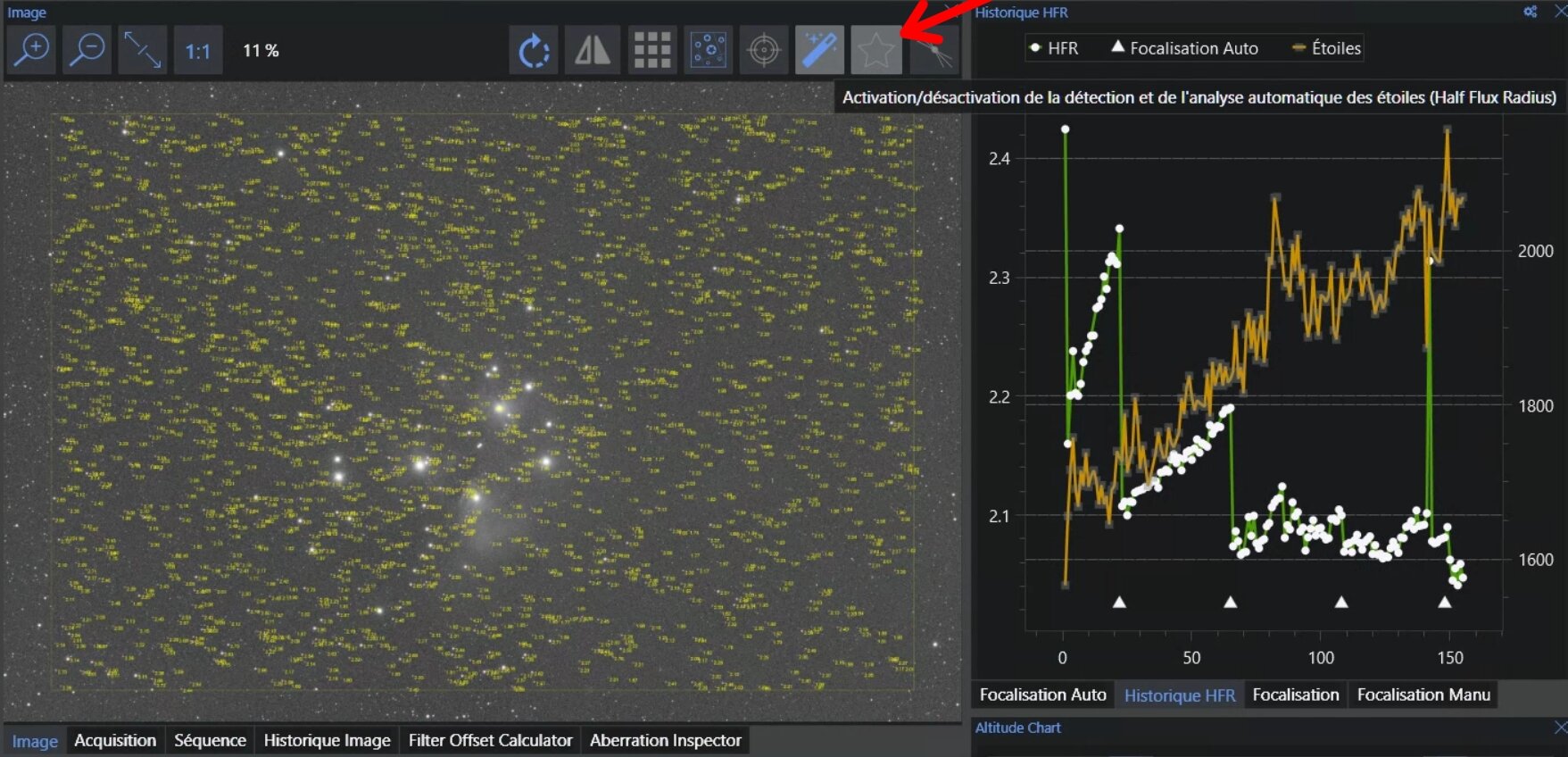 NINA : affichage HFR sur l'image + forçage du retournement au méridien