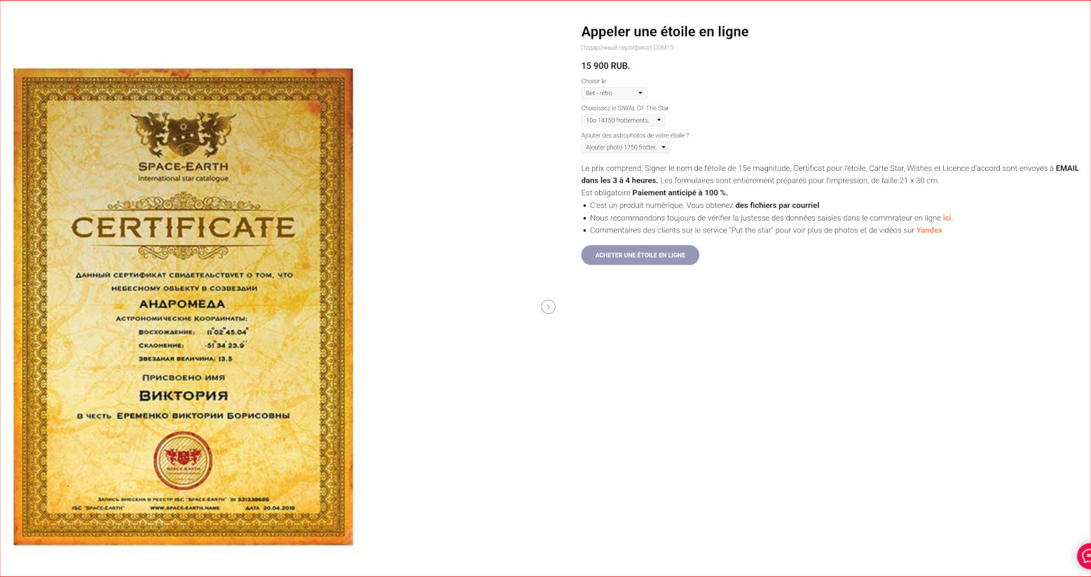 Je cherche des roubles...pour acheter une étoile en ligne!