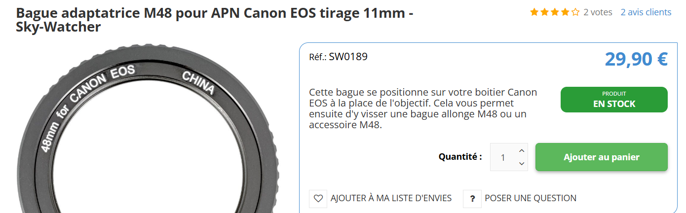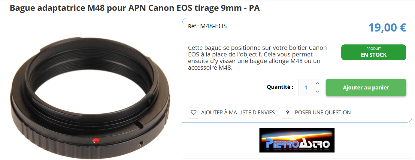 J'utilise une lunette askar fra 400 avec 72 mm de diamÚtre et comme toi un canon 1000d partiellement dé filtré