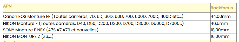 - il y a 44mm entre le capteur et la "bague" de l'APN ( sans objectif).  Il faut donc que l'épaisseur de ma bague T2 soit de 11 mm pour atteindre les 55mm de back focus de correcteur ?