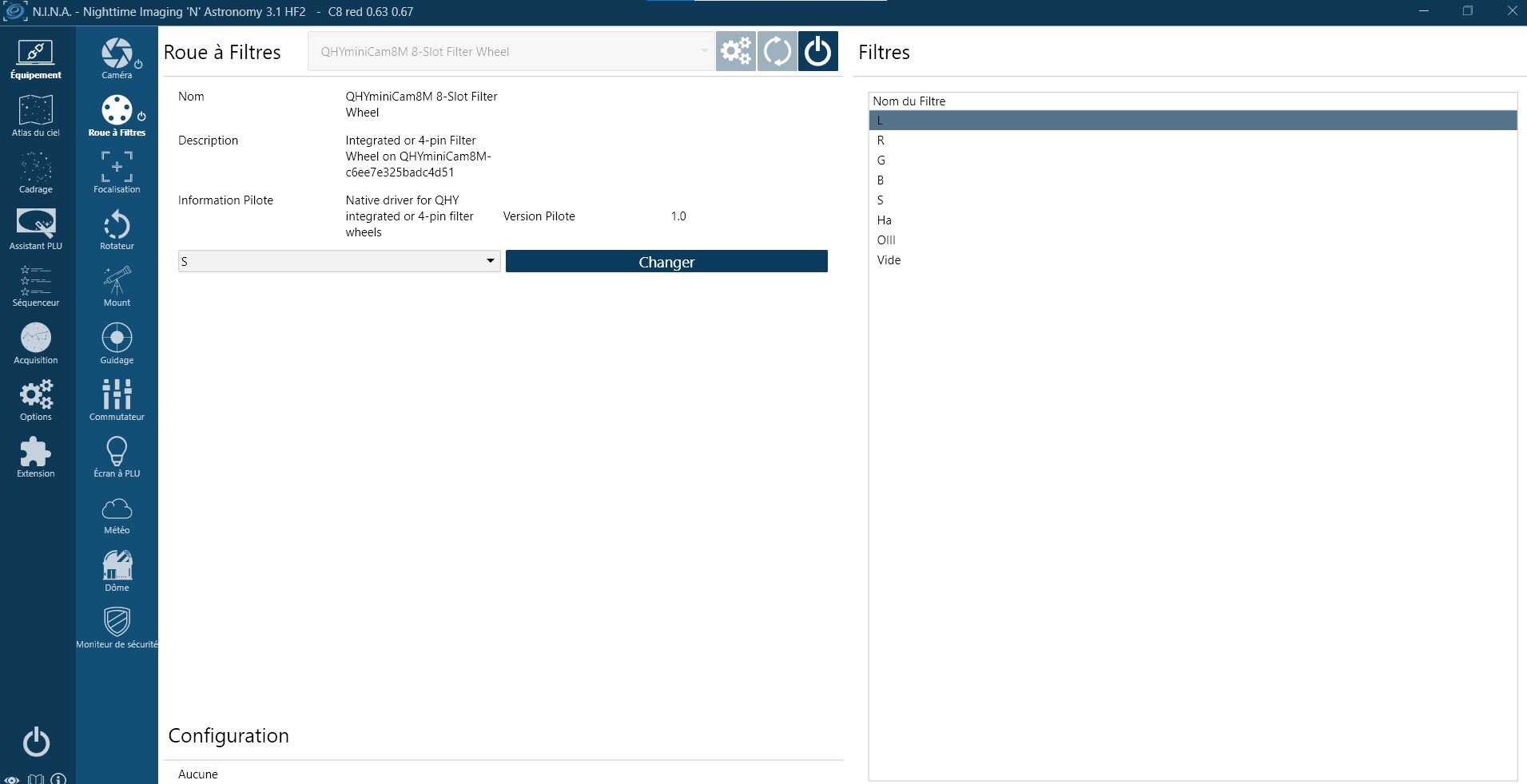En fait c'est le même truc que pour la caméra, si pas d'install de SDK, elle est vue comme une caméra couleur par NINA.