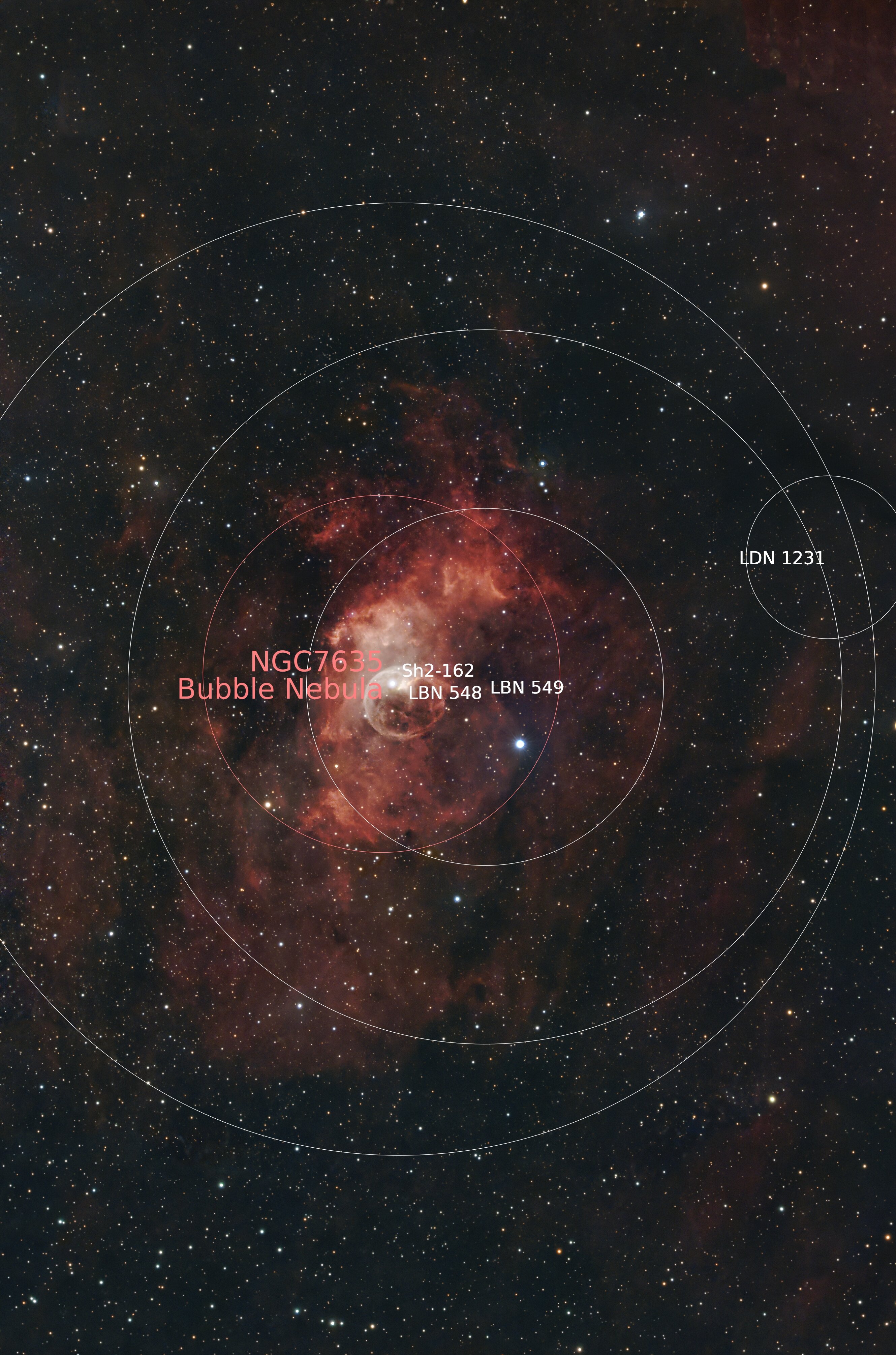 NGC 7635 ou Sh2-162 ou LBN 549 ou Caldwell 11 ou nébuleuse de la Bulle est une nébuleuse en émission (région HII) et une bulle de vent stellaire d'environ 8 000 années-lumière (al) de diamètre, située à environ 7 000 al de la Terre, dans la constellation de Cassiopée du bras de Persée de la Voie lactée.
