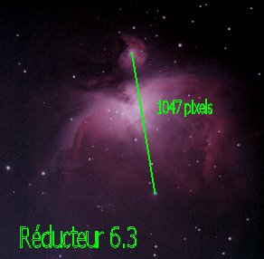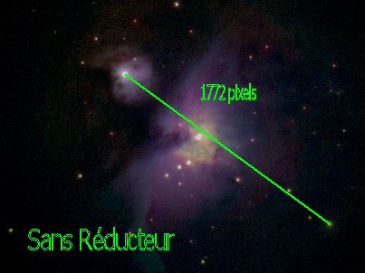 J'ai donc obtenu 1772 pixels sans réducteur et 1047 pixels avec réducteur soit un rapport de 0,59.