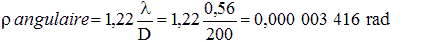 Maintenant tu remplis D en mm et tu as le pouvoir de résolution (pour être bon, le résultat doit être le plus petit possible)