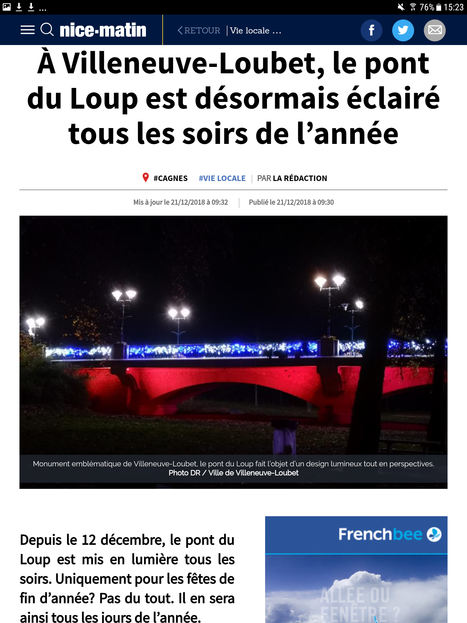 Dans la liste de ceux qui allument 365 nuits sur 365, alors que c'était éteint auparavant, le pont sur le Loup, à Villeneuve-louer. Le Loup est un petit cours d'eau côtier des Alpes maritimes, dont le cours supérieur se situe dans le Parc naturel Régional des Préalpes d'Azur, candidat à la réserve de ciel étoilé.