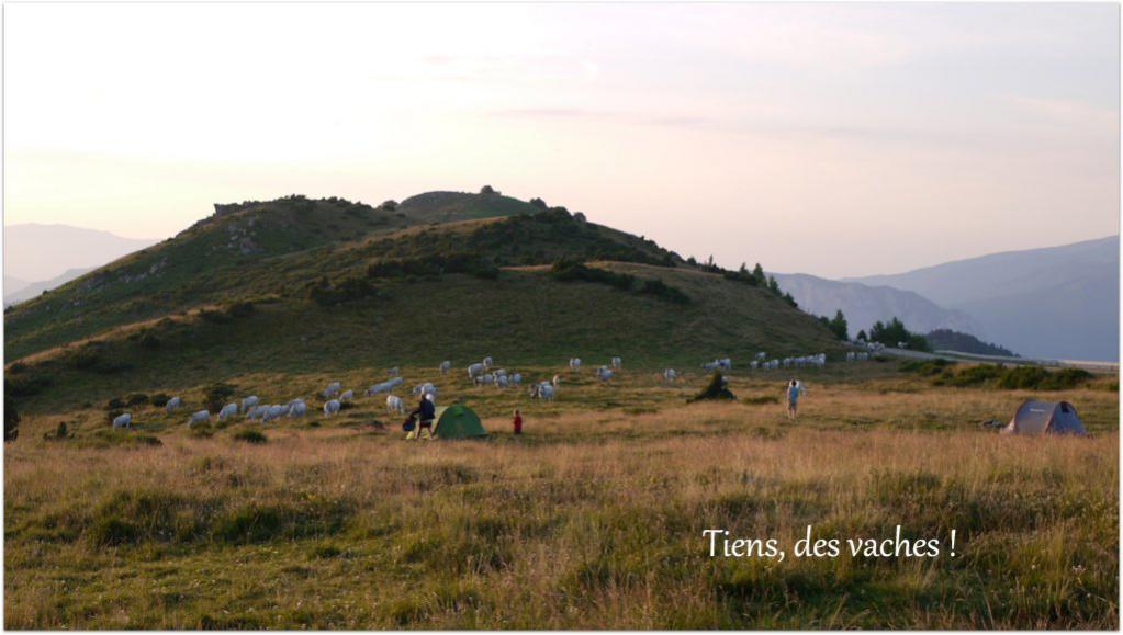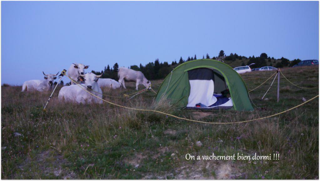 (vaches prenant leurs aises chez elles là où certains campeurs se croyaient chez eux pour une nuit)