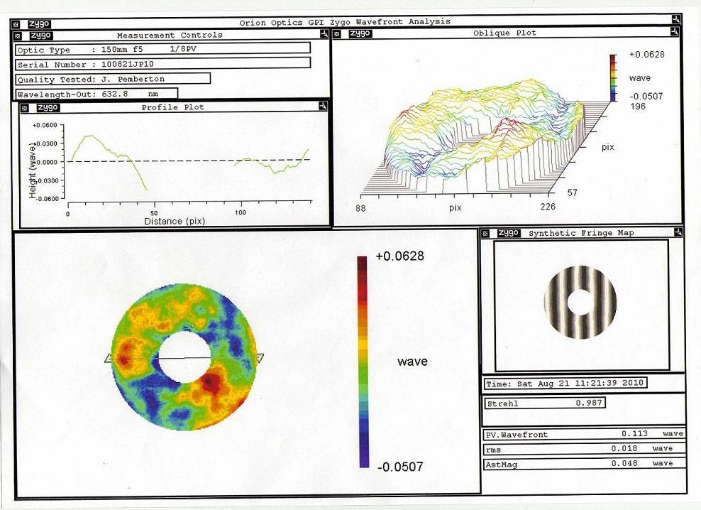 Le trou au milieu est quand même très très gros et ils mesurent à 632 nm, c'est loin du bleu ! Sinon, tout à l'air solide et surtout, le PO est très très bien à première vue (mais je suis mal habitué). Le chercheur est un 8X50 Chinois, exactement le même que j'avais sur le GSO mais c'est très bien comme chercheur alors rien à dire de ce coté là.