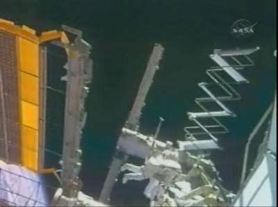 Je vous rappelle que la première sortie extra-véhiculaire qui verra l'installation du dernier panneau solaire sur la station commencera tout à l'heure à 18h13! (heure de Paris) :)