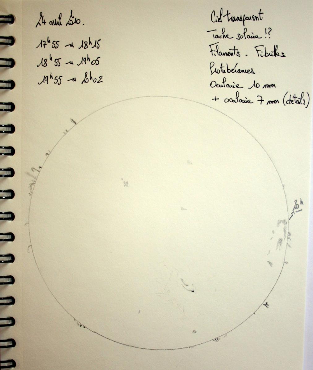 (pour info, un relevé est un dessin en herbe pour ne pas faire un vrai dessin parce que je suis une grosse faignasse, mais qui donne tout de même tous les éléments visibles sur et autour du Soleil) :D