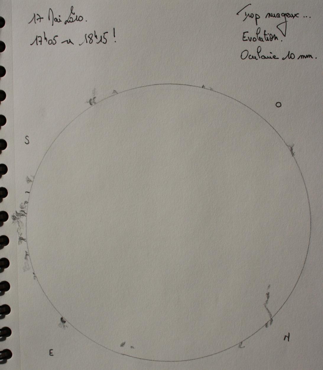 Le Sud apparaissant sur mes dessins était le 1er point du limbe à toucher l'horizon.