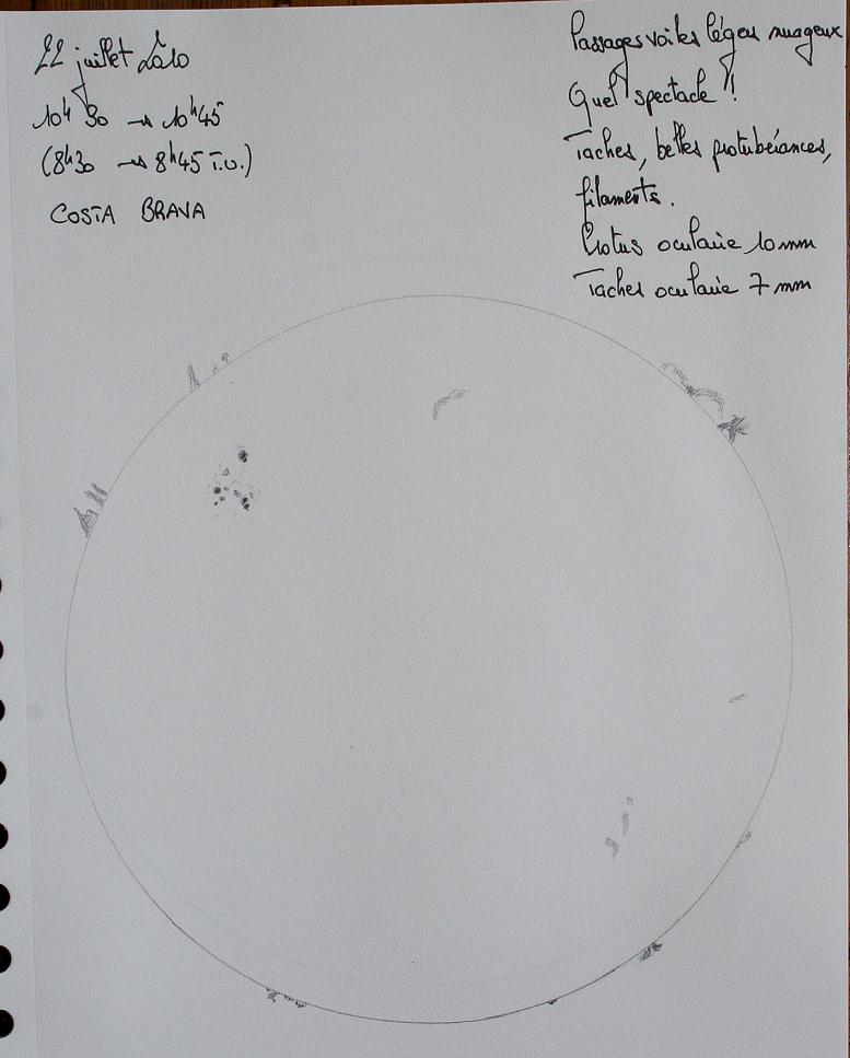 Sur le disque, pas de filaments, juste des zones plus blanches, celle où se trouvait le serpent et qui tend à disparaitre et à l'opposé la nouvelle, plus étendue qui arrive.