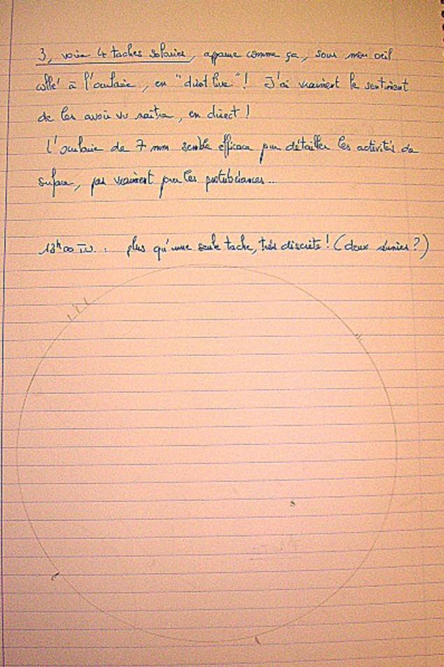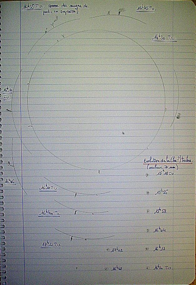 J'ai essayé de détailler l'évolution de cette "tachette" qui se scindait en 2 en fin d'après-midi. Exercice pas facile, mais voilà ce que cela donnait (détail de la précédente page agrandi).