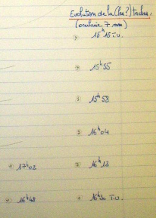 Pour me rattraper (quel fainéant ce Will ! :D), p'être une photo de mon cahier de notes, histoire de voir l'évolution notamment de la (les ?) tache...
