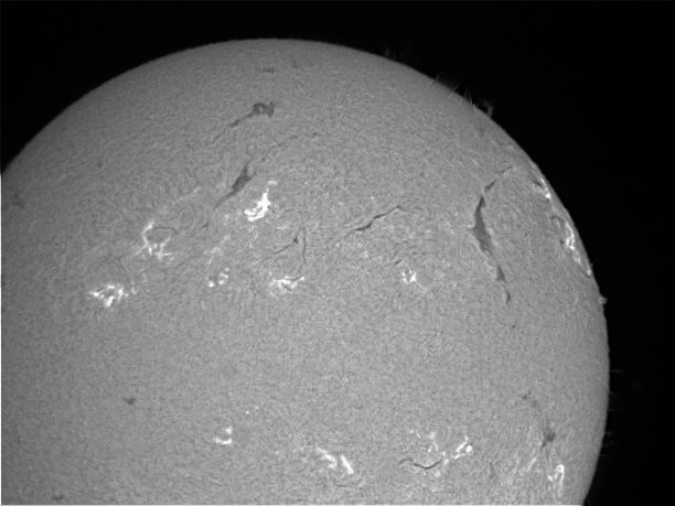 Cela faisait bien longtemps que je n'avais pas imagé le soleil. Aujourd'hui avec ce grand beau temps j'ai repris du service !!!!! Voilà les images en LB de cet après-midi. J'ai trouvé qu'il n'y avait pas beaucoup de turbulences malgré la faible hauteur du soleil. Le froid a surement permis d'avoir cette faible turbulence. Il me reste à traiter les images en H-Alpha. Ca fait plaisir de se servir à nouveau du matériel.