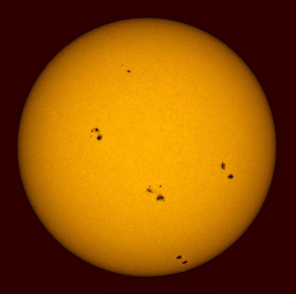 Voilà les images en LB de ce matin . Il y avait longtemps qu'il n'y avait pas eu autant de taches à la surface de notre étoile. Il me reste à traiter les images en H-Alpha.
