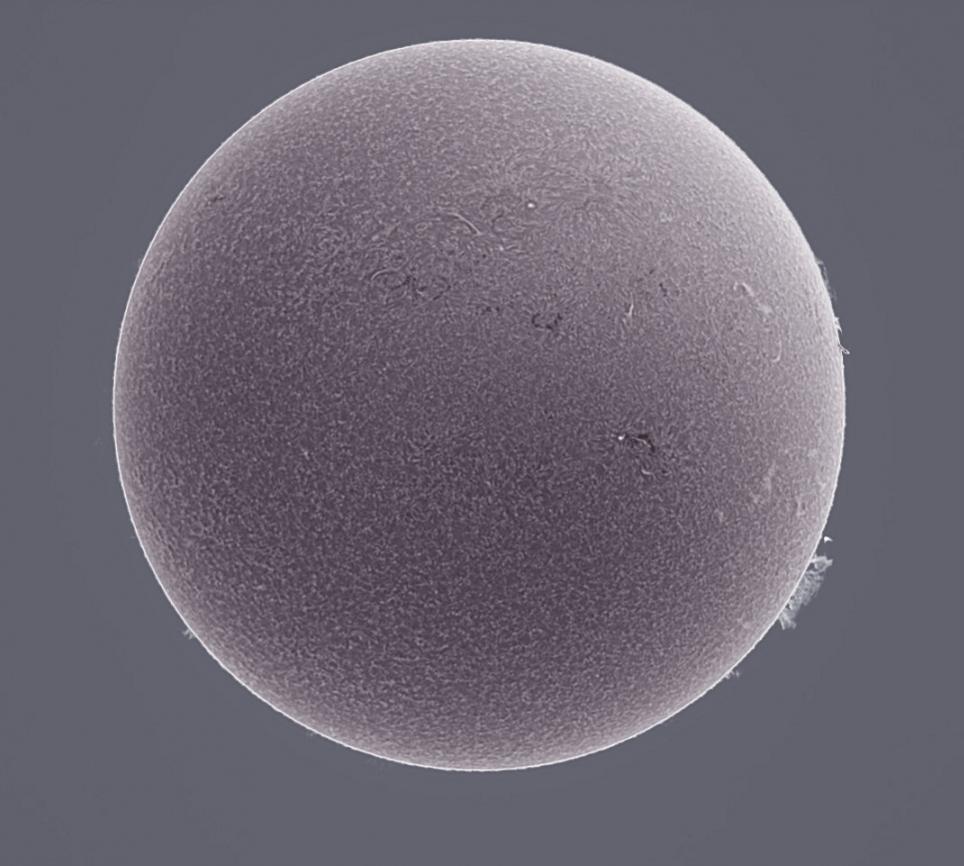 La version N&B par contre est bonne, malgré "l'effacement" de la partie protubesque! bravo en tous cas, une chance d'avoir du soleil en ce moment !