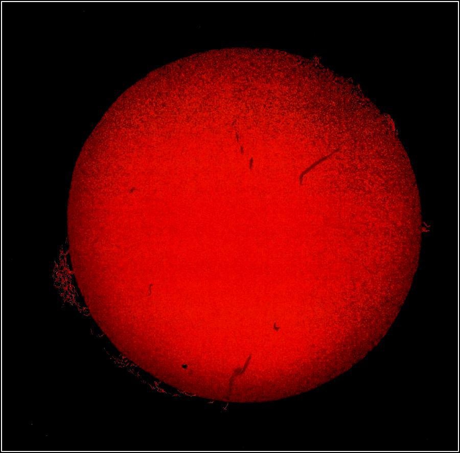 L'effet "3D" du filament du bas débordant en protu était bien visible durant des heures, jusqu'à ce que le Soleil se couche ...