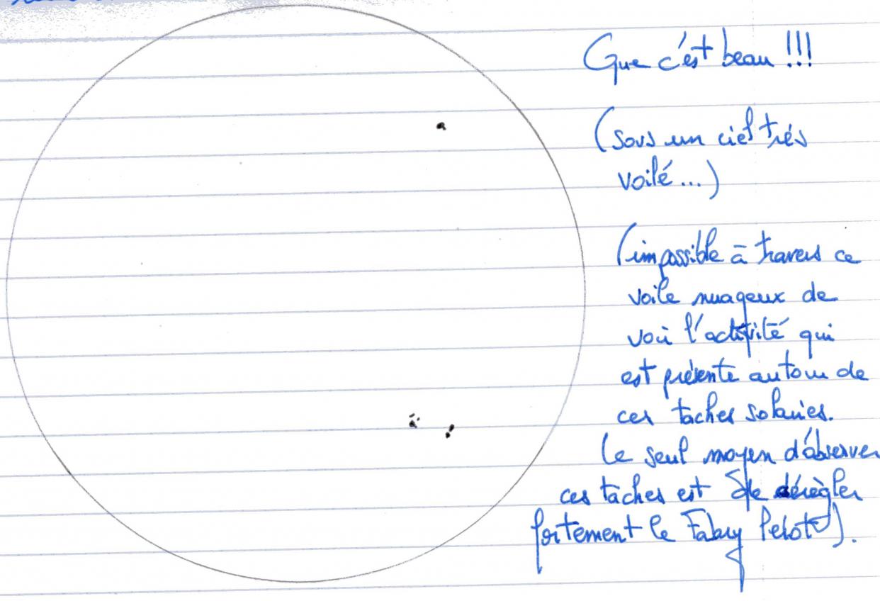 En attendant le retour de notre ami Jean Louis, voici le rapide relevé de taches sur mon cahier d'observations faite à cette heure-là :