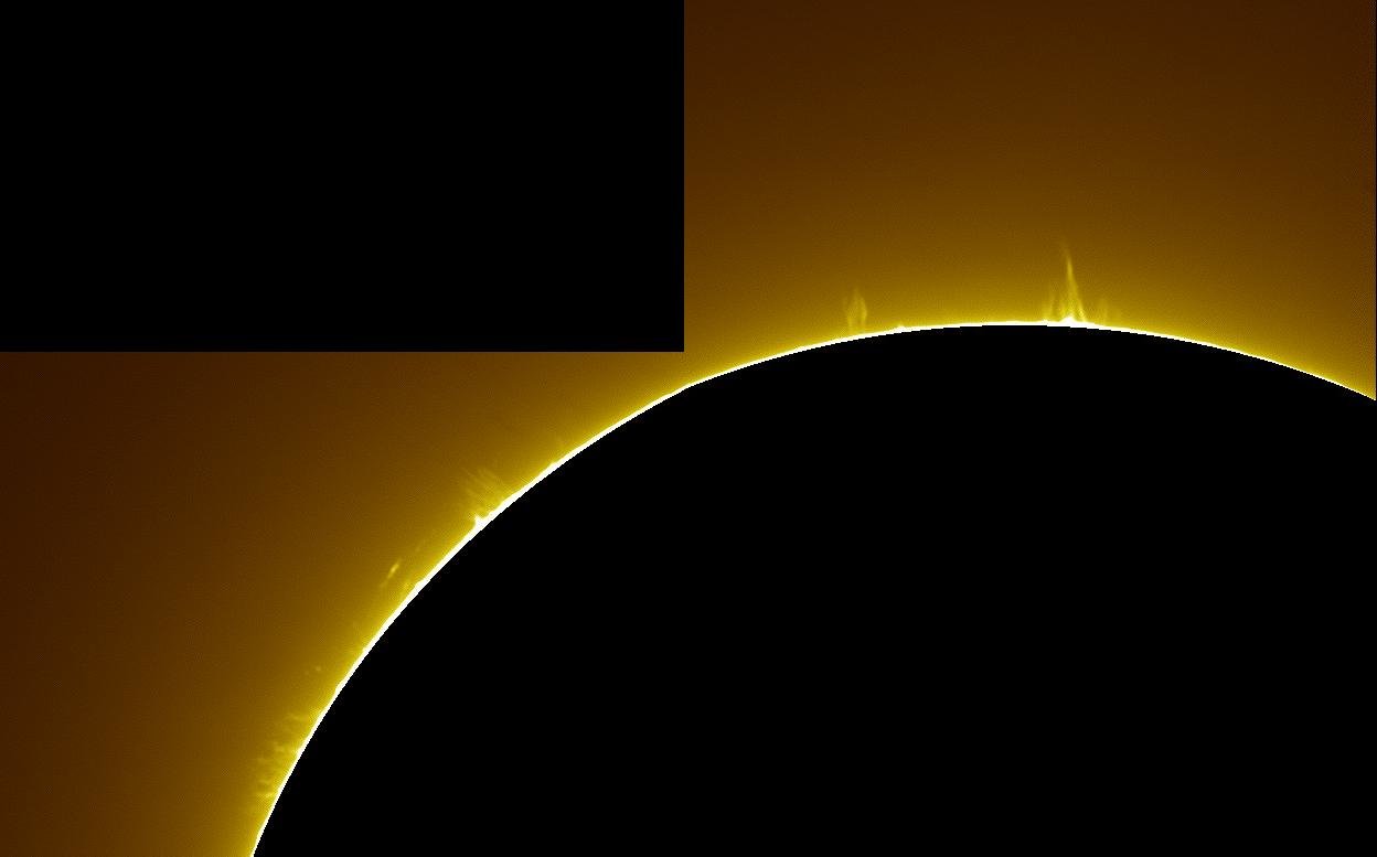 Ma petite participation du jour avec une mosaïque de deux images sur des  protus hyper diffuses (à l’oculaire je ne les voyais presque pas )