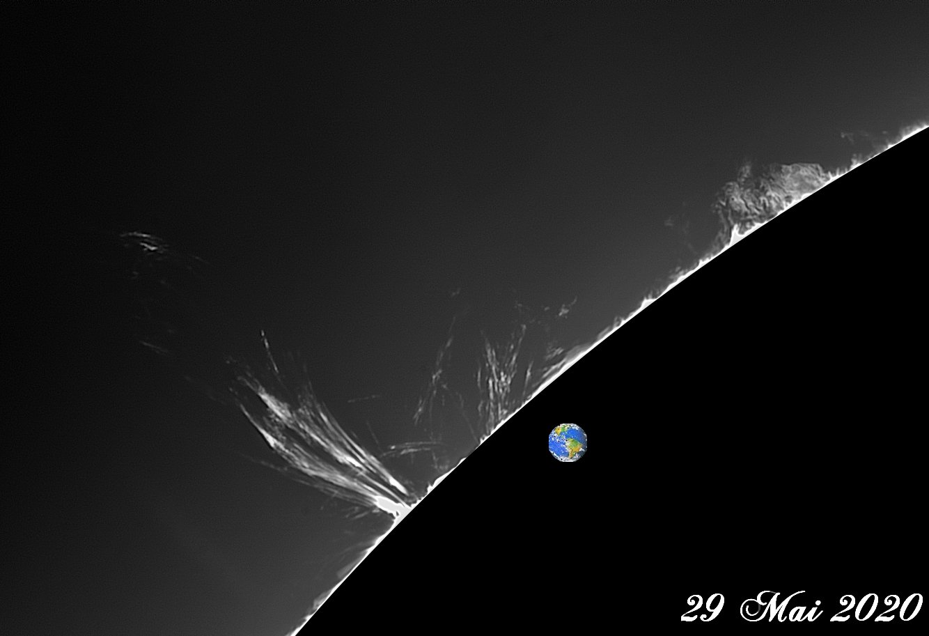 En plus belle image du Soleil, il est instructif d'avoir la Terre comme point de référence. :)
