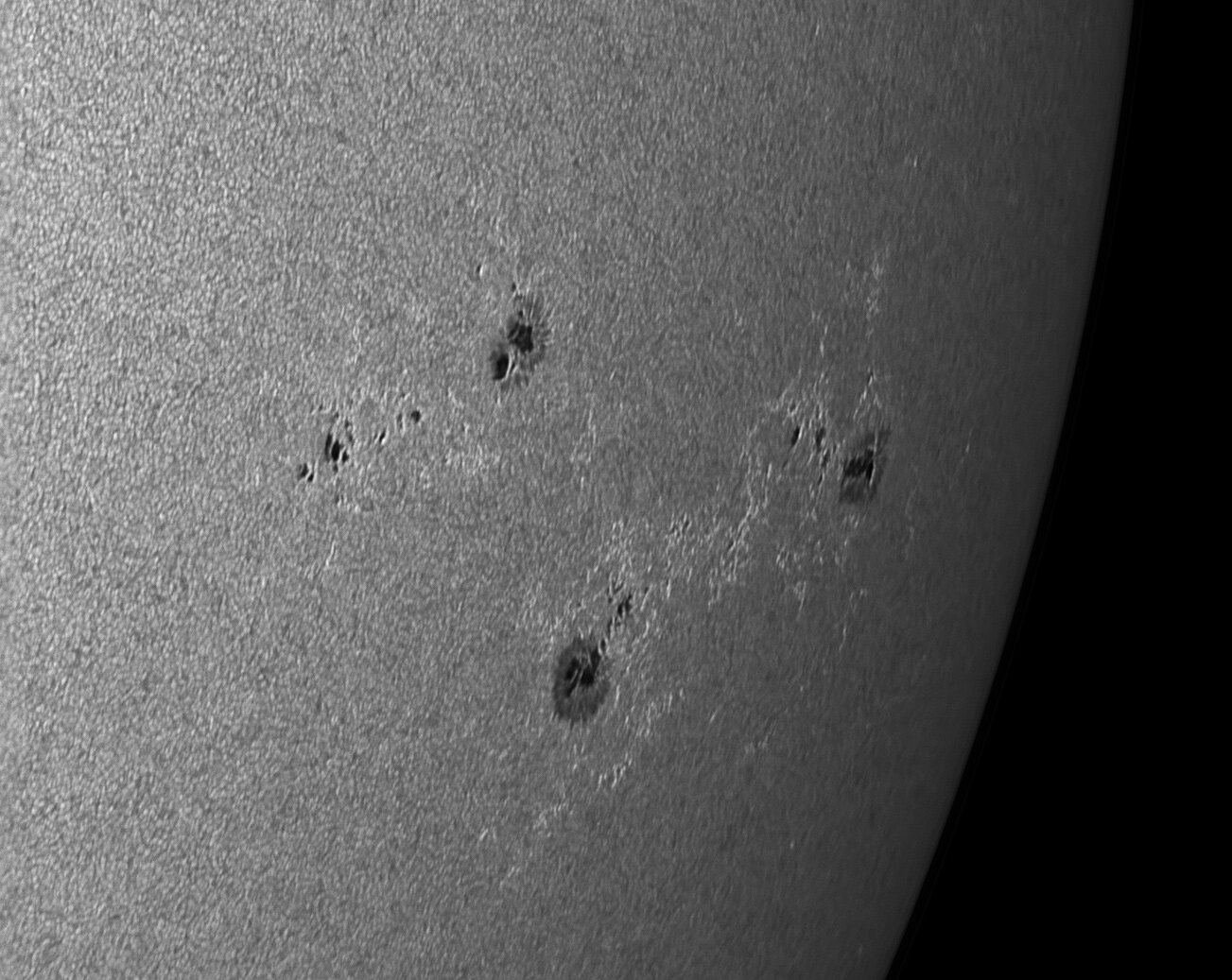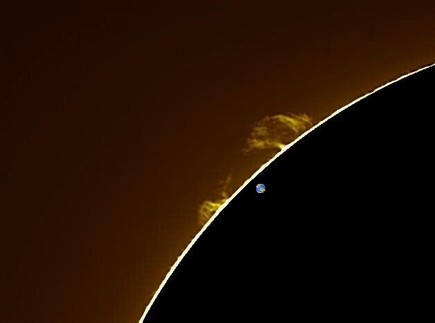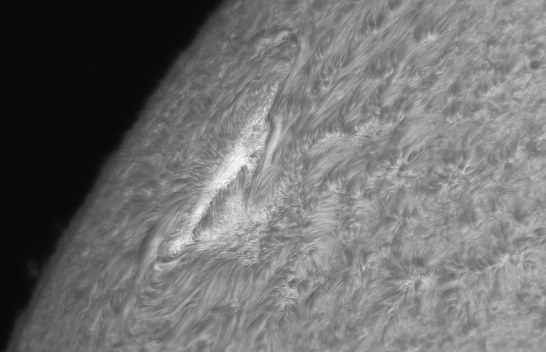 Voici une image faite hier avec ma lunette de 204 mm H-alpha.