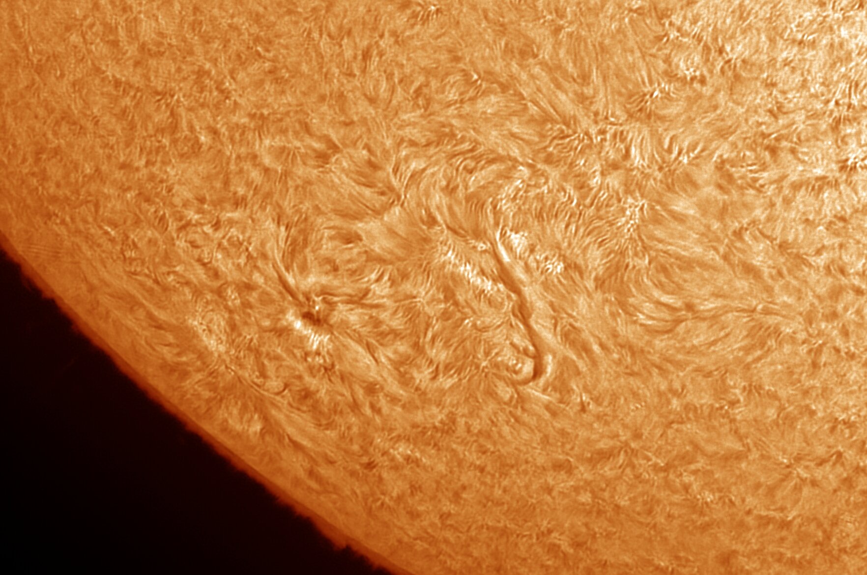 Ce matin, le ciel de normandie est limpide, "coronal" comme disait Pierre Bourge (en roulant le R).  Donc sortie vite faite de la Lunt juste pour voir ... Une jolie petite protubérance en arche.